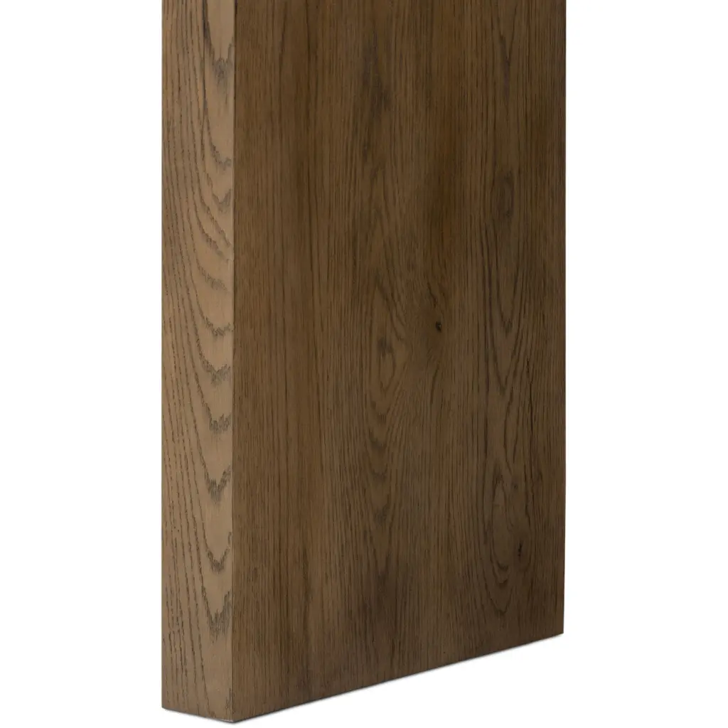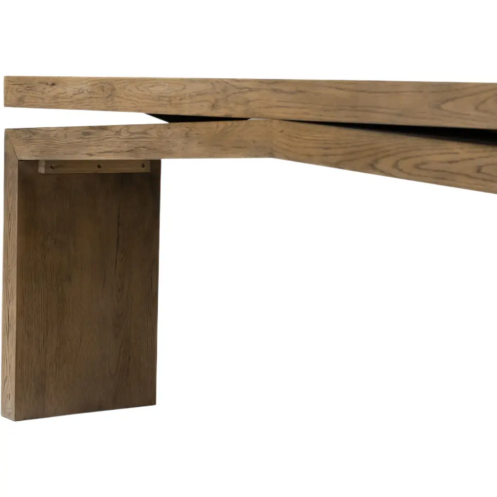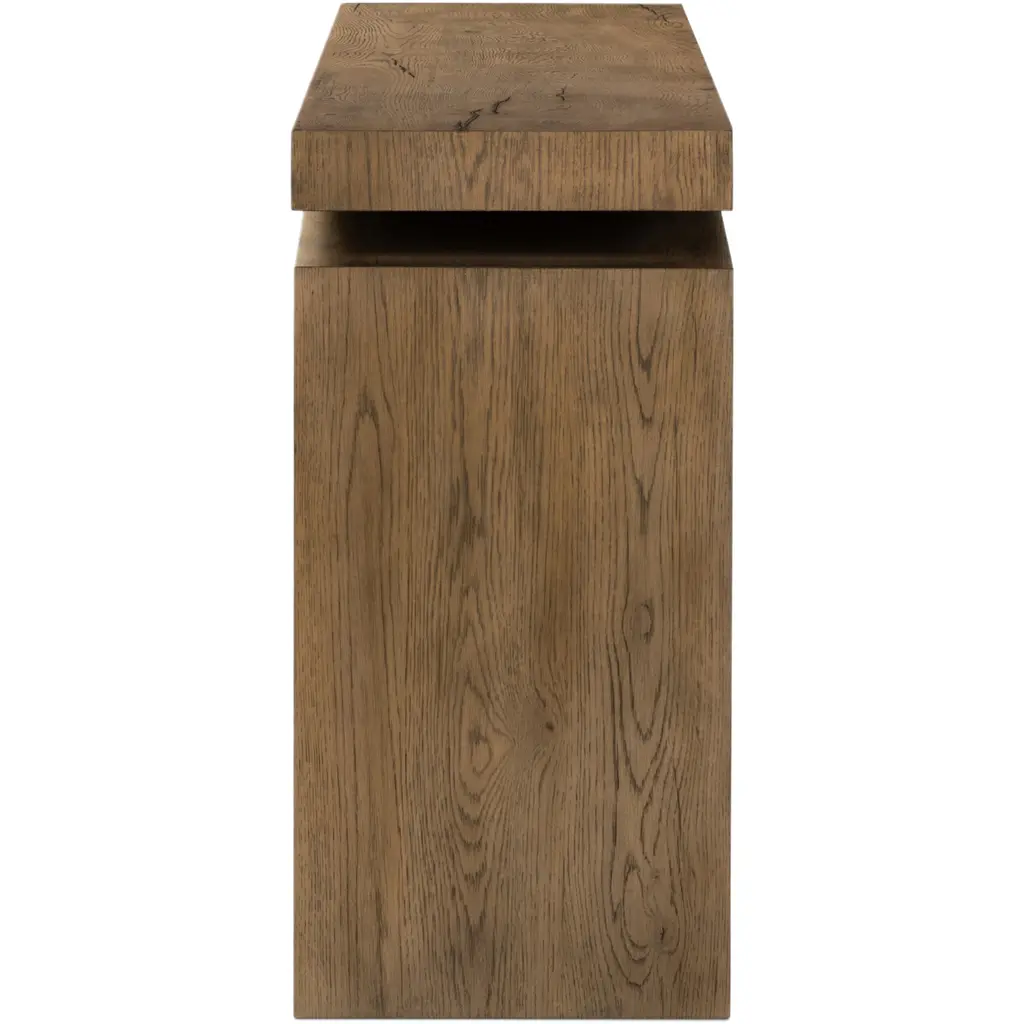 The Tenera Console Table - 79" is a masterpiece of simplicity and elegance, designed to highlight the natural beauty of its veneer top. Its streamlined form creates a sense of delicate balance, gracefully poised over a subtly angled base. This console table is a perfect blend of form and function, offering a sophisticated touch to any space while maintaining a minimalist aesthetic.