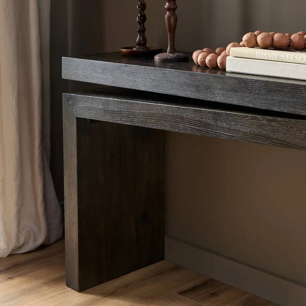The Tenera Console Table - 94" is a testament to simple, streamlined design that beautifully showcases the natural allure of reclaimed pine. This modern media console exudes rustic charm, making it a versatile addition to any living space. Its substantial length and minimalist aesthetic allow it to seamlessly blend with various decor styles, while the use of solid reclaimed materials highlights its commitment to sustainability and timeless elegance. Whether placed in a living room or entryway, the Tenera Console Table offers both functionality and a touch of nature-inspired sophistication.