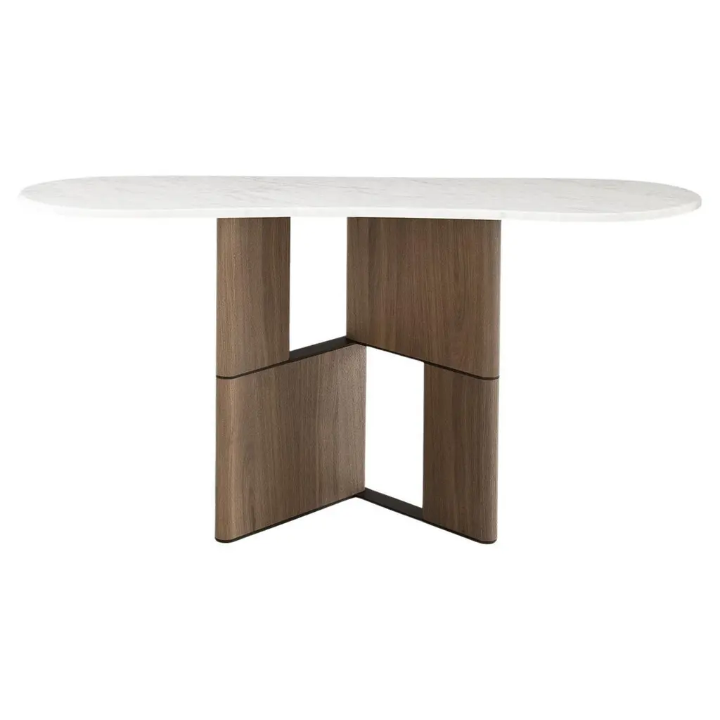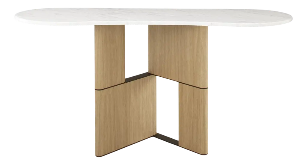 Tetris Oak and Marble Console by Morica DesignDimensions: D 49 x W 150 x H 75 cm.Materials: Oak, White Carrara marble, metal.Available in Canaletto Walnut, Laguna Oak, or Oak wood. Please contact us.Available in White Carrara or Black Marquina marble.Console table with legs in curved MDF veneered in real wood or oxidized bronze lacquered, with dark-bronzed painted metal inserts. Bean-shaped top with a half bullnose edge in genuine gloss-finished white Carrara marble or satin black Marquinia marble. To ensure the stability of the console, it is important that it is placed on a vertical surface, and we recommend fixing it to the wall with the two metal plates and screws provided.The spark of an idea began with three brothers, Moreno, Riccardo, and Carlo, and the desire to provide genuine Made in Italy design furniture, delivered to customer homes directly from the factory.We guarantee our customers a controlled, certified supply chain and an excellent service that makes it easy for their items to be delivered directly to their homes.We are a fresh organization, full of ideas with the desire to make the world a better place, to change the way we consume by providing beauty, sustainability, and reliable service!
