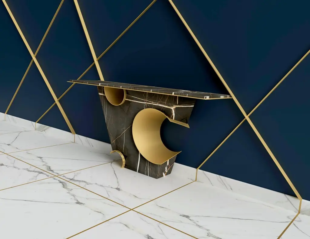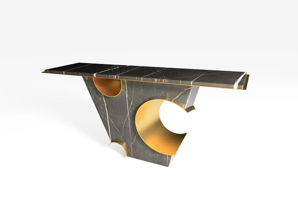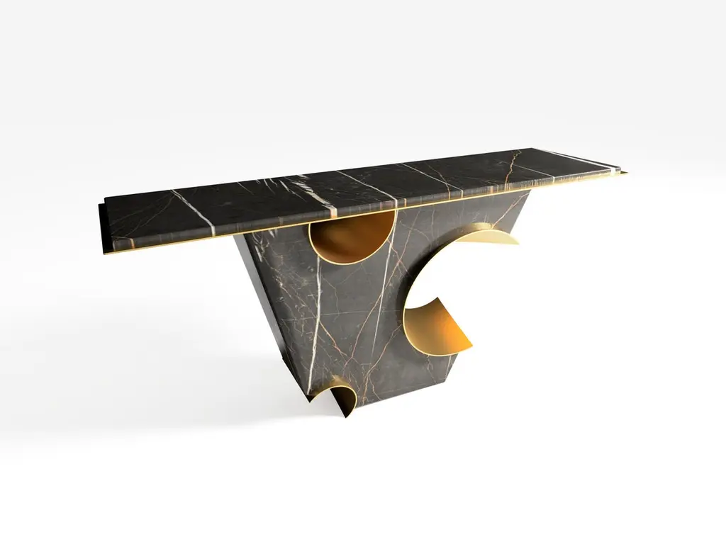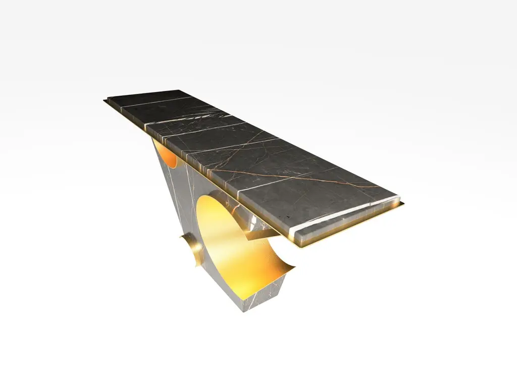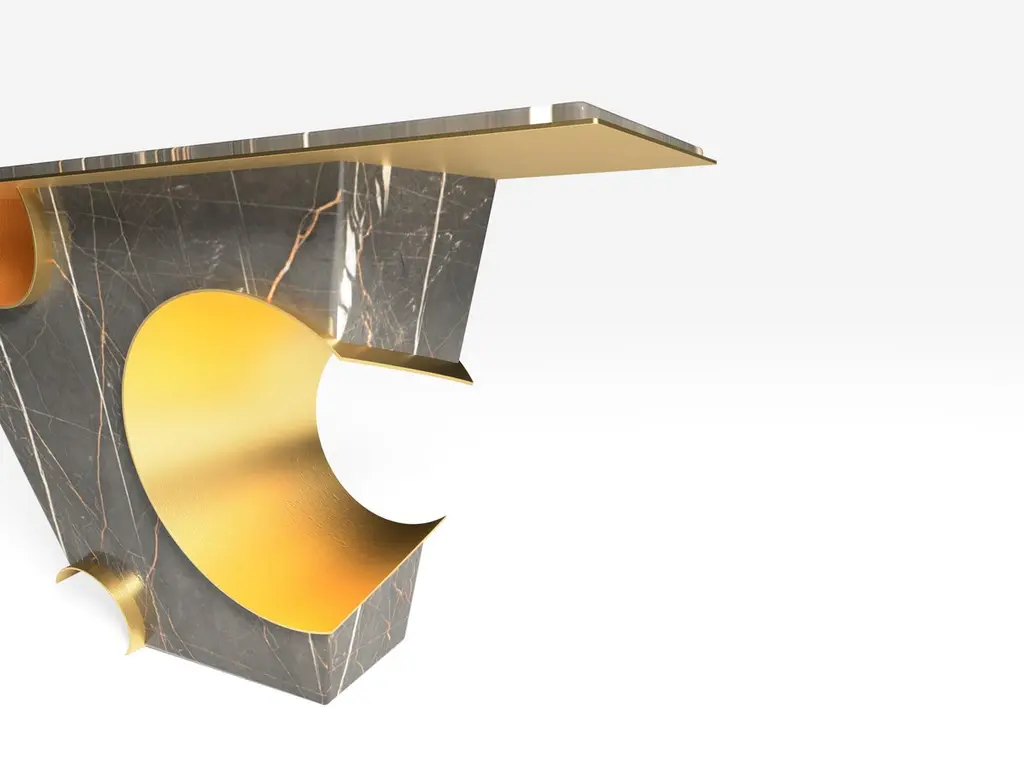 The Galactic console table, 1 of 1 by Grzegorz MajkaEdition 1 of 1Dimensions: 70.87 x 19.69 x 37.40 inMaterials: Marble. Brass details. This piece of work allows us to leave our everyday problems and go on a much further journey. Almost thecosmic journey where we distinguish relationships between planets, objects, or materials. The console reflects the galaxy of dependence and connections. Emphasizes that nothing happens by chance, and everything we want to achieve depends only on ourselves. Carefully selected materials evoke a source of energy and a force that drives us to act to achieve higher goals. Grzegorz Majka is a self-taught Polish artist who explores the concepts of modularity, sculptural form, and artisanal processes in the design of furniture and lighting. His work seamlessly blends craft and contemporary design, incorporating high-quality noble materials like natural stone, wood, metals, and hand-blown glass. Guided by a deep respect for the inherent character of materials, Grzegorz highlights natural irregularities, textures, and patterns - veins in stone, the living patina of untreated metals, the organic feel of brushed surfaces. These elements are not hidden but embraced, inviting collectors on a sensory journey through touch and time.His studio practice focuses on handcrafted limited-edition furniture that is not only functional, but also living, authentic, collectible art.