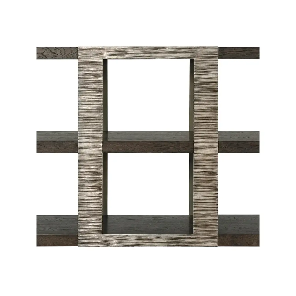 A bold statement piece that seamlessly blends organic warmth with industrial refinement. Featuring three reclaimed oak veneered tiers in a rich Smokehouse finish, this console table offers both style and functionality with its open, airy design. The striking ridged textured black nickel metal supports add a sculptural element, enhancing the table’s architectural appeal. Designed for versatility, this console table is perfect for displaying decor, books, or collectibles while maintaining a contemporary aesthetic. The contrast of natural wood grain and industrial metal detailing makes it a perfect addition to modern, loft, or transitional interiors. Dimensions: 60" W x 18" D x 34" H