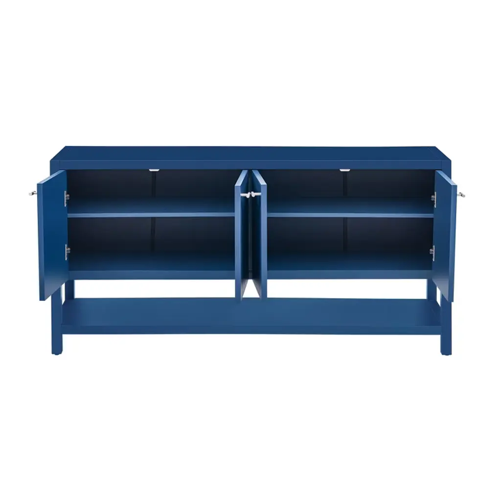 The entrance cabinet reconstructs the entrance aesthetics with vertical storage thinking, and the four-door dual storage design is combined with the open bottom shelf to form a storage system combining virtual and real. The cabinet body is made of high-density MDF plate, the surface is covered with wear-resistant finish, and the corners are treated with rounded anti-collision, which not only maintains the modern minimalist smooth lines, but also strengthens the bearing stability through the V-shaped solid wood legs at the bottom. Four cabinet doors built-in adjustable layer, classification and storage of shoes, tool boxes and other large items; The bottom open shelf depth of 35cm, can display decorative baskets or often wear slippers, both practical and display functions. The matte metal handles embellished the door panels with geometric cut shapes, providing a subtle contrast to the wood texture and adapting to a variety of home styles such as modern, Nordic or industrial.