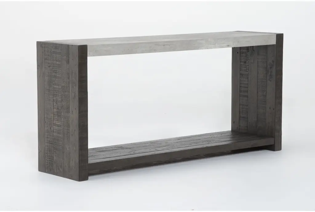 Titan Grey 64" Wide Faux Concrete Top & Reclaimed Wood Base Entryway Console Table | Shelf | Pine