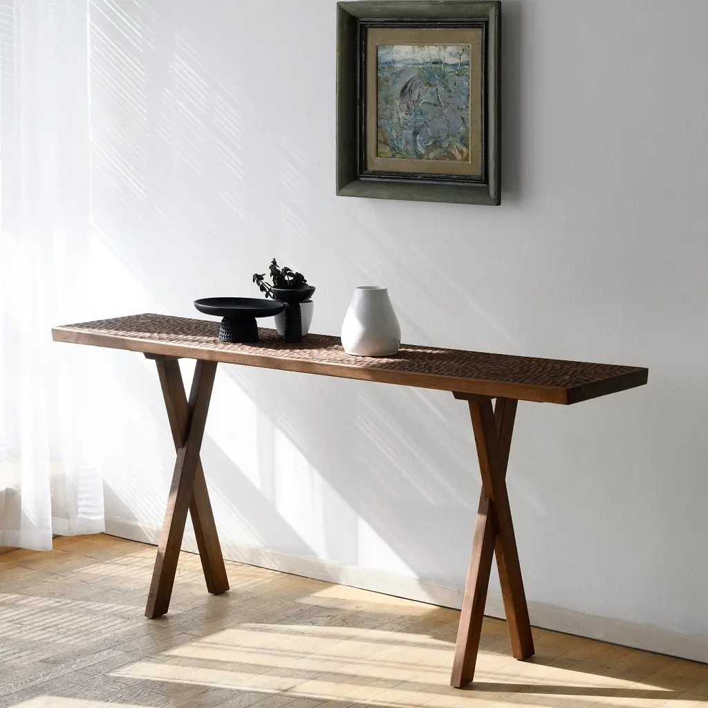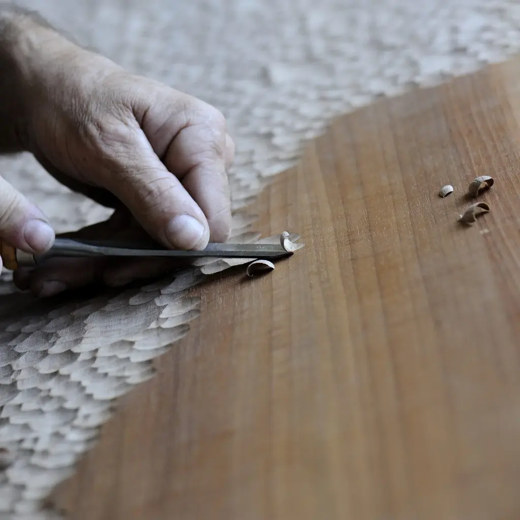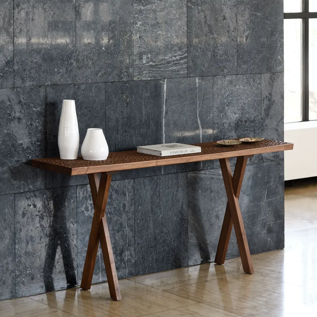 Often dubbed "a master of understatement," designer Ilse Crawford gives a subtle twist to the solid-wood console table from her Touch range. Like other pieces in the collection, the surface is hand-carved by Zanat's master craftsmen in a random take on the signature scaled motif, making each piece unique. With classically modern slim lines and an X-base, it's fashioned in a range of richly finished sustainably sourced timbers and makes a versatile addition to many a setting.