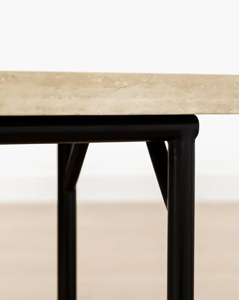 With the organic texture of unfilled travertine stone, the Travertine Console brings both a natural and refined feel to your space. The hand cut slab of travertine sits on a structure of hand forged and hammered iron, highlighting the mastery of materials in its straightforward design. Elegant but subdued, the console table gives a cohesive finish to entryways.
