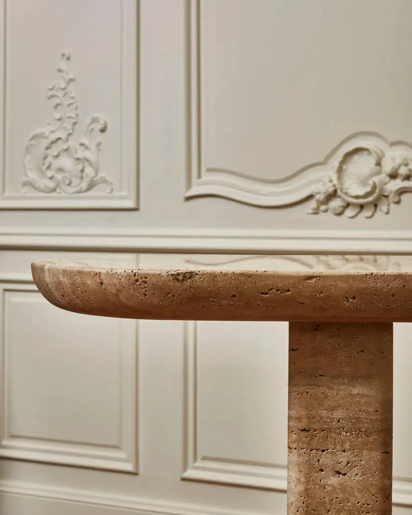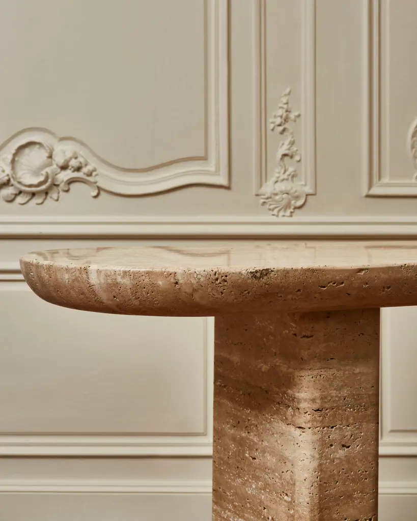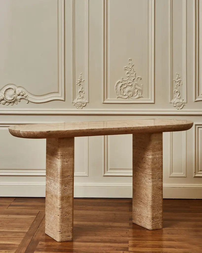 Superb console in massive travertine stone by Studio Glustin.France, 2022.
