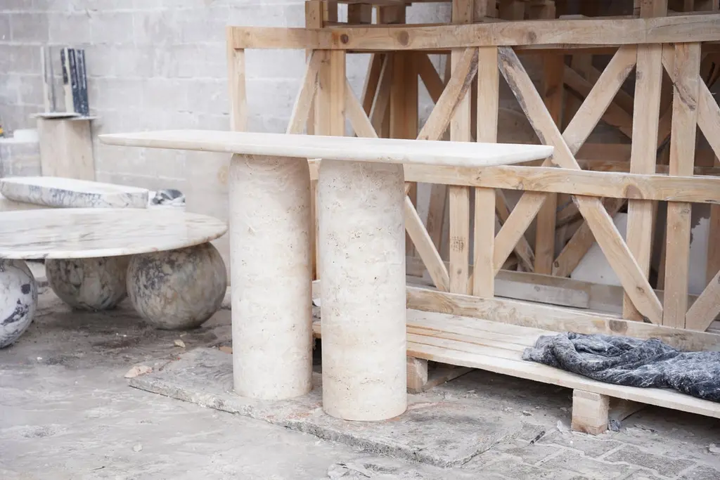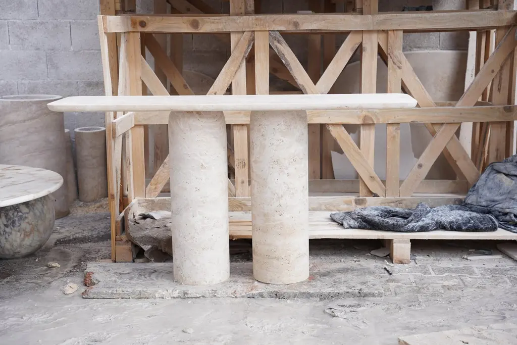 Travertine Console Table Inspired By Angelo Mangiarotti