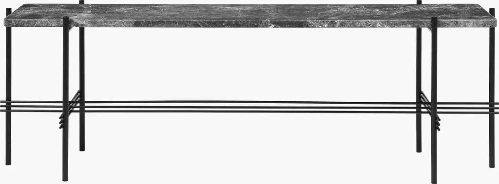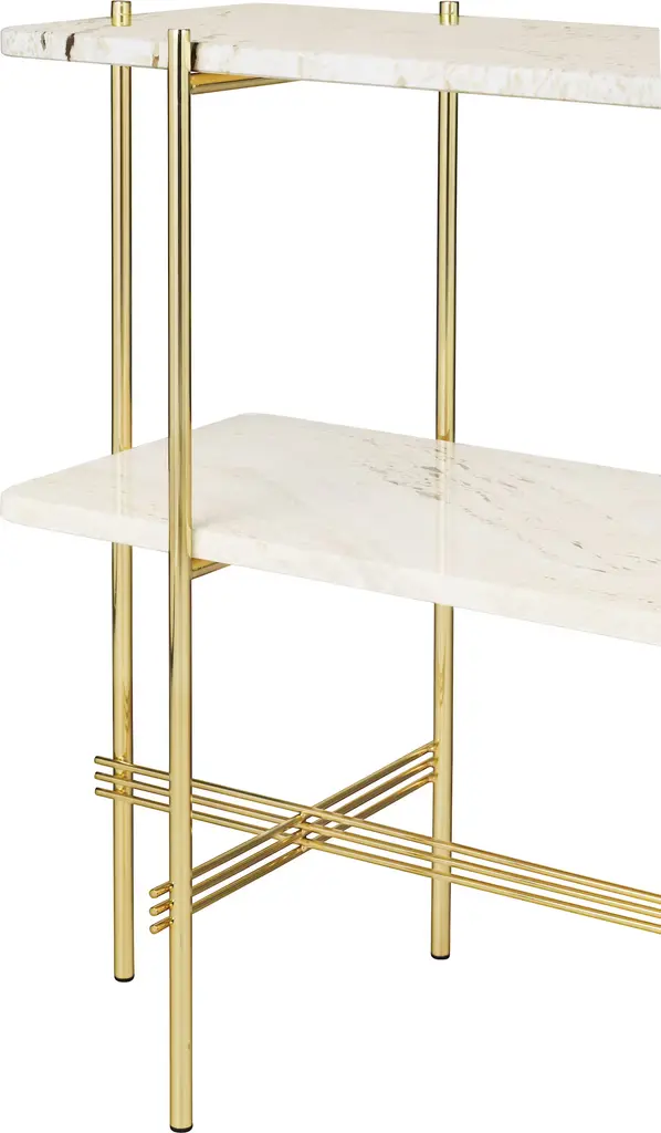 Designed by GamFratesi for the renowned restaurant The Standard in Copenhagen, for which it's named, the TS Collection (2014) lends a sophisticated, sculptural aesthetic to any room with its slender legs and beautiful crisscross braces in brass or steel and contrasting top in marble or glass. Made in Italy.