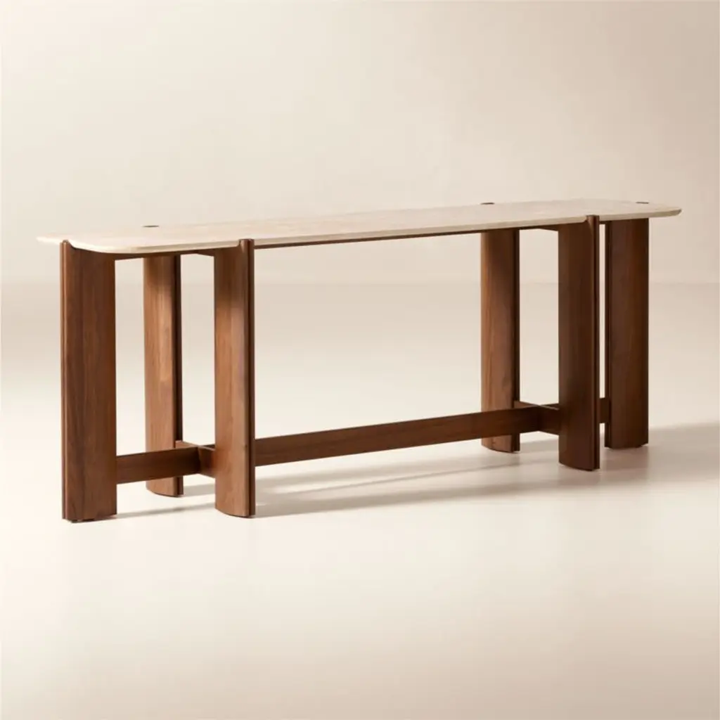 Lawson-Fenning's signature Californian aesthetic meets 1970s Italian design, all with an eye on materiality and craftsmanship. Wide walnut legs, certified sustainable by the Forest Stewardship Council , sport bullnose edges that highlight the smoothness of the wood. The base supports a top of solid travertine with a chamfered edgea subtle detail that elevates the silhouette. Due to the inherent variations of natural stone and wood, no two tables will be exactly alike. CB2 exclusive.