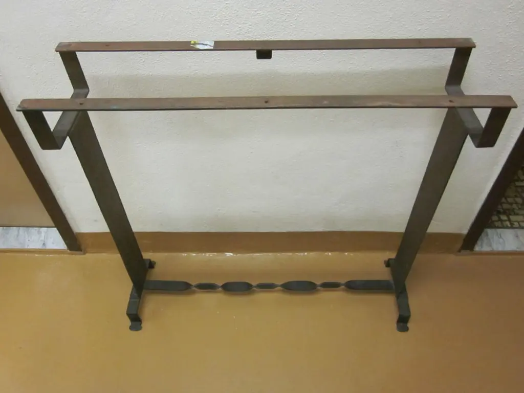 Two French Midcentury 1930 Style Wrought Iron & Stone Consoles