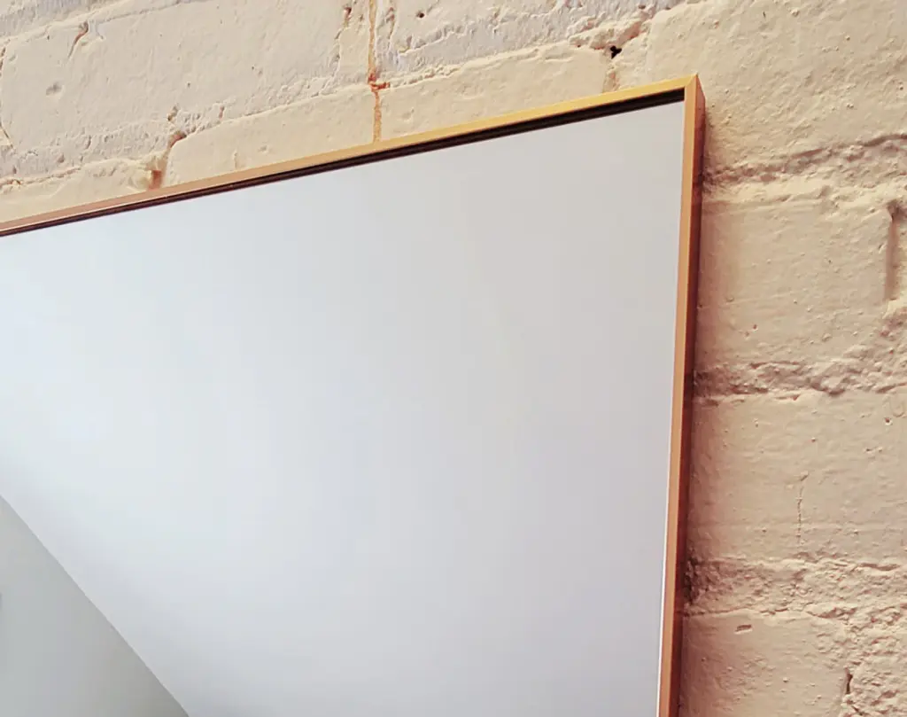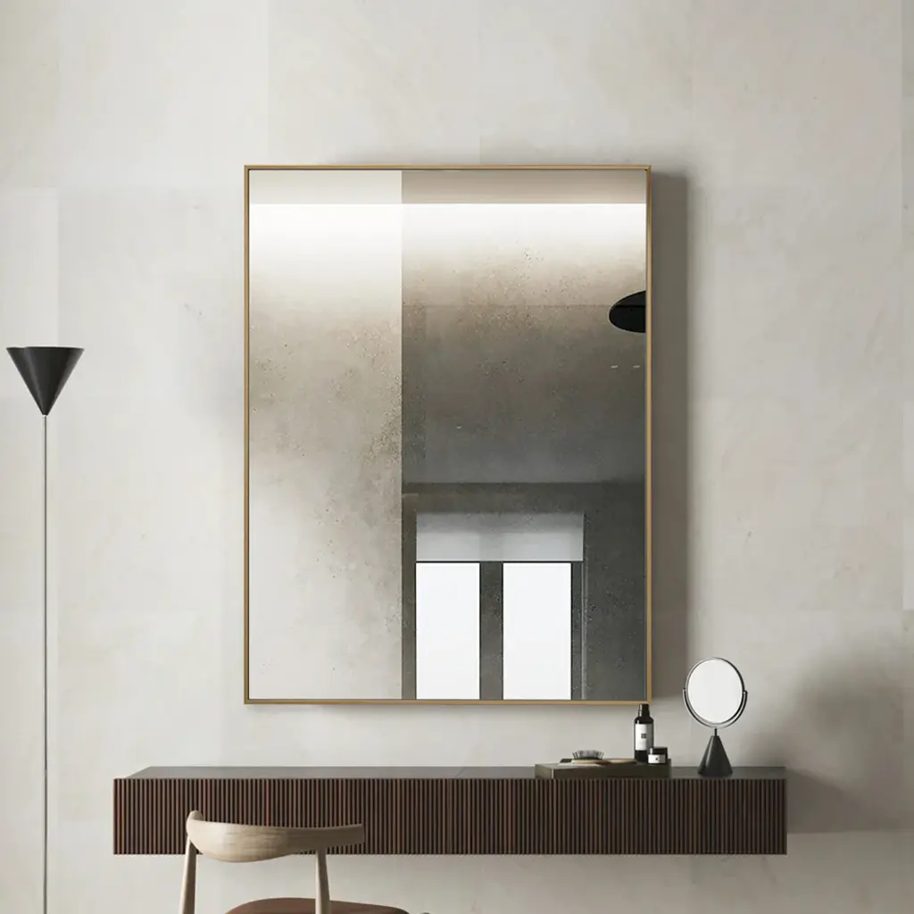 The Vanta modern metal framed mirror is part of Decor Wonderland''s En Passant Framed Collection. This gorgeous classic mirror features an ultra thin solid metal frame profile to allow your room decor to stand out, add brightness without an overpowering heavy frame. The mirror is made with premium 5mm float glass and silver. When used in a bathroom this versatile mirror suits chrome, brushed nickel or matte black fixtures. There are 3 brackets affixed to the back to hang either horizontally or vertically just chose which 2 brackets to use. Alone or in multiples, this decorative wall mirror is an easy update for any room renovation. Features: • Dcor Wonderland Vanta Mirror: Available in 31.5 in. x 23.6 in. or 39.5 in. x 29.6 in. in black or gold frames. DW MIRROR QUALITY: Made of silver which lasts longer with superior clarity, copper-free mirror, excellent resistance to humidity and distortion free from deluxe glass so there is no fun house effect • EASY TO INSTALL: Mounting brackets with screws and dry wall anchors included, hangs horizontally and vertically • ILLUMINATES and ENLARGES: This metal framed mirror can trick the eye into making your room appear larger since light bounce of the beveled edges around the room. • DESIGN TIP: When hanging your mirror above a vanity, console table, arm chair or fire place, place it 6- 8inches above the visual line • SHIPPING: Packed in double cartons with Styrofoam protectionTips on Buying MirrorsWhen buying mirrors especially for bathrooms, it is important to look for mirrors that are backed with silver. Steam from showers fills the room and combines with the metal in the mirror and will begin to rust. Double coated silver mirrors (as this one is) has the most tolerance to humidity and will last significantly longer. Silver mirrors also produce a warmer reflection than aluminum. This mirror is also made using high quality float glass. Have you ever seen a mirror where the reflection is just not right, a bit blurry or warpped reflection? Those mirrors are usually made using sheet glass. Decor Wonderland only uses float glass mirrors which have a much cleaner finish and no distortion.