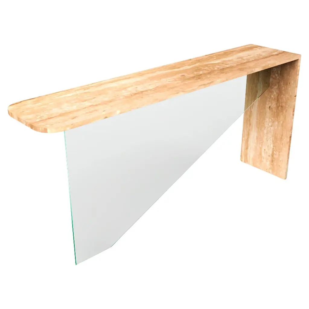 Console Venezia blends the allure of wood tempered by time and nature, with glass, which mimics the transparency of water, the queen of the city.It's made of two layers of glass 10+10 mm that house a thin section of oak "briccola".