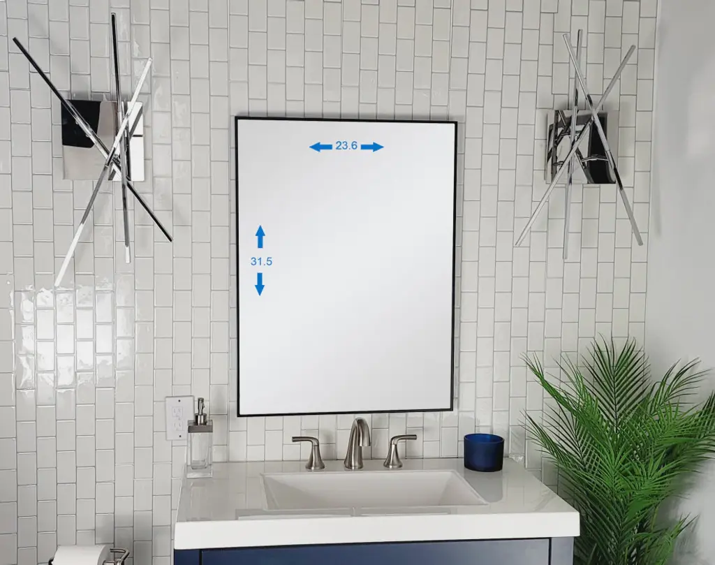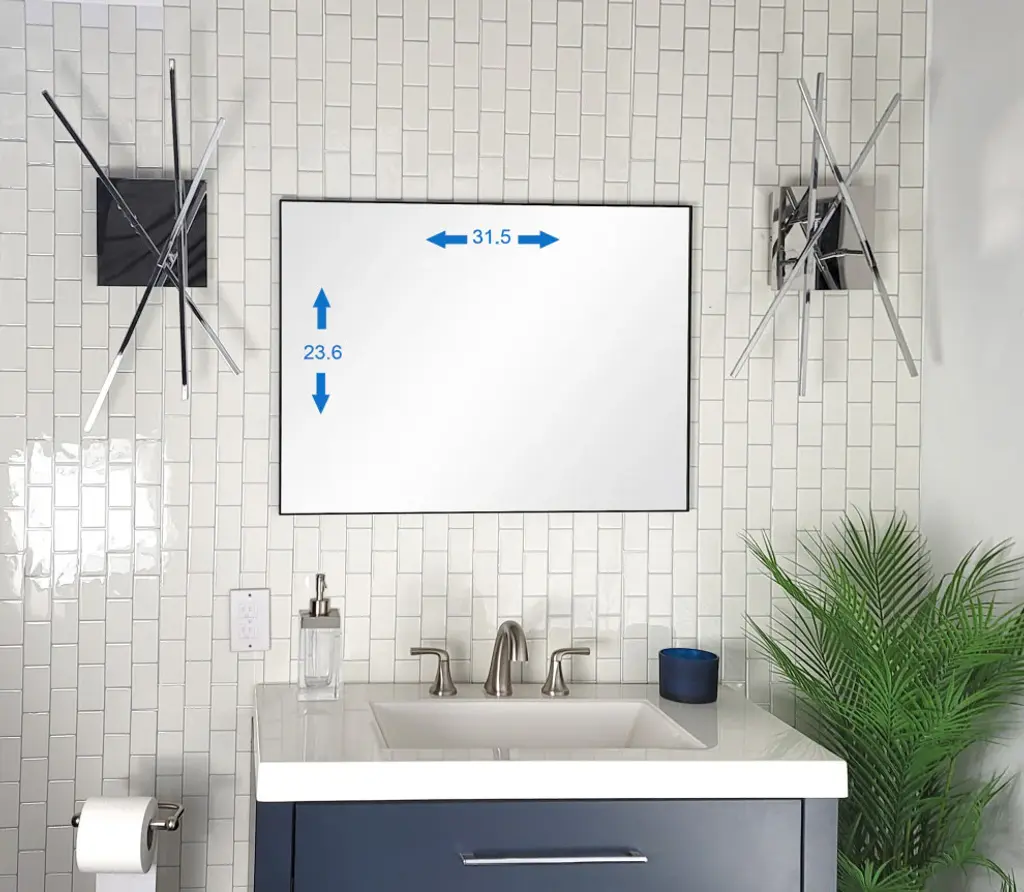 The Venta modern framed mirror is part of Decor Wonderland''s En Passant Framed Collection. This gorgeous classic mirror features a solid 1.5 inch black PS frame profile to allow your room decor to stand out, add brightness without an overpowering heavy frame. The mirror is made with premium 5mm float glass and silver. When used in a bathroom this versatile mirror suits chrome, brushed nickel or matte black fixtures. There are 3 brackets affixed to the back to hang either horizontally or vertically just chose which 2 brackets to use. Alone or in multiples, this decorative wall mirror is an easy update for any room renovation. Features: • Decor Wonderland Venta Mirror: 31.5 in. x 23.6 in. or 39.5 in. x 29.5 in. DW MIRROR QUALITY: Made of silver which lasts longer with superior clarity, copper-free mirror, excellent resistance to humidity and distortion free from deluxe glass so there is no fun house effect • EASY TO INSTALL: Mounting brackets with screws and dry wall anchors included, hangs horizontally and vertically • ILLUMINATES and ENLARGES: This metal framed mirror can trick the eye into making your room appear larger since light bounce of the beveled edges around the room. • DESIGN TIP: When hanging your mirror above a vanity, console table, arm chair or fire p place it 6" 8" above the visual line • SHIPPING: Packed in double cartons with Styrofoam protectionTips on Buying MirrorsWhen buying mirrors especially for bathrooms, it is important to look for mirrors that are backed with silver. Steam from showers fills the room and combines with the metal in the mirror and will begin to rust. Double coated silver mirrors (as this one is) has the most tolerance to humidity and will last significantly longer. Silver mirrors also produce a warmer reflection than aluminum. This mirror is also made using high quality float glass. Have you ever seen a mirror where the reflection is just not right, a bit blurry or warpped reflection? Those mirrors are usually made using sheet glass. Decor Wonderland only uses float glass mirrors which have a much cleaner finish and no distortion.