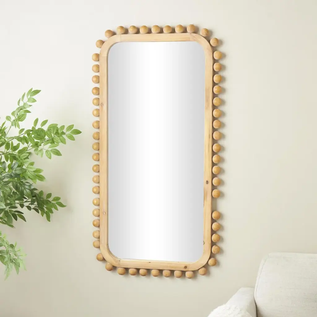 Hang against a bold-colored wall, on top of a console table decorated with tinted flower vases, shells, and other coastal-themed displays. Can be hung vertically using the keyholes on the back; nails and screws are not included. Suitable for indoor use only. This is a single brown-colored entryway mirror. Modern style.