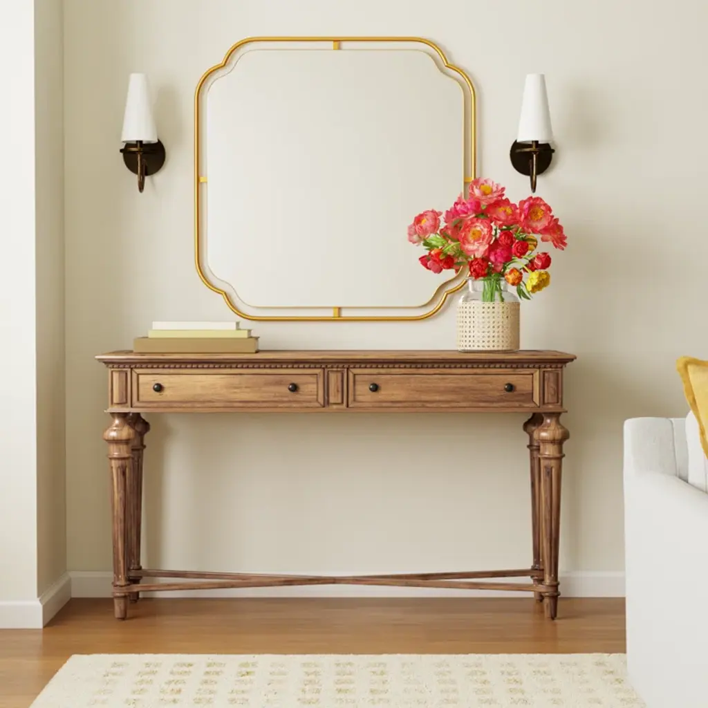 Embrace timeless style with this charming console table, featuring spacious drawers perfect for organizing entryway essentials or adding a touch of elegance to your living area. Its versatile design effortlessly complements various decor styles.