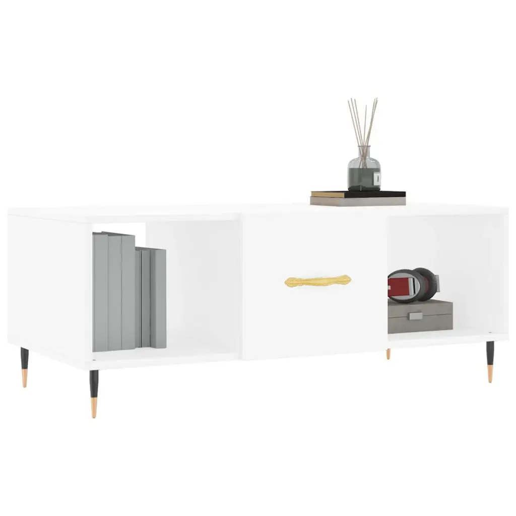 This coffee table offers a lovely mix of style and practicality, perfect for modern living spaces. With a smooth white finish and a sleek rectangular shape, it gives you a great surface for drinks, coffee, or showcasing decorative items in your living room or hallway. Its elegant design fits right in with contemporary decor, making it a standout piece in any room. Ample Storage: This coffee table has loads of storage with three compartments, perfect for organizing magazines, remotes, or decor items, so everything's easy to find and looks neat. Durable Design: Made from top-quality engineered wood with iron legs, this table is built to stand the test of time. The sturdy materials mean it can handle daily wear and tear, giving you a reliable piece of furniture. Sleek Aesthetic: The smooth white finish adds a stylish touch while fitting in beautifully with your decor. Its clean lines and minimalist vibe make it perfect for a modern look. Versatile Use: This table isn't just for coffee; it works great as a console table or even as a little surface in your home office. It's super adaptable for different needs while keeping its trendy look. Easy Assembly: You’ll get all the instructions and hardware you need, so you can set it up easily and start enjoying it right away.