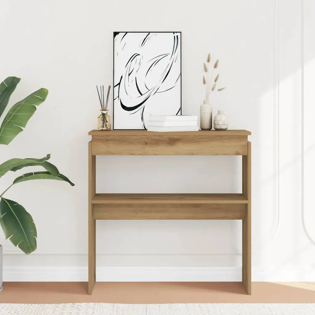 This versatile artisan oak console table is designed to brighten up any hallway or living area with its modern look and practicality. With a sleek rectangular shape and lovely brown finish, it offers a stylish touch while providing practical storage for your daily bits and bobs. Ample Storage: This console table has a spacious shelf that can hold decorative items, books, or plants, making it spot-on for your entryway or living room. Modern Design: Its artisan oak color and sleek shape make it a standout, easily fitting in with all sorts of decor and enhancing your space. Durable Build: Made from engineered wood, this table is solid and built to last, ready to handle daily life like a champ. Smooth Surface: The tabletop's smooth finish makes cleaning a breeze, so you can keep it looking great with hardly any effort. Versatile Usage: This console table can do it all - use it as an entry table or a stylish plant stand, boosting both its appeal and functionality in any home.