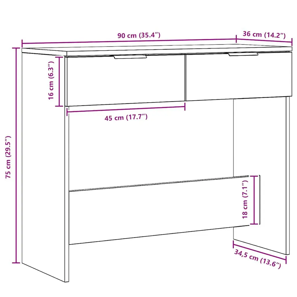 This Artisan Oak Console Table adds a lovely touch to any hallway or living space. It’s designed for both looks and usability. With its smooth lines and rich brown color, it gives a warm feel, making it perfect for displaying decorative items or storing stuff in your entryway or living room. Ample Storage: The table has two large drawers, perfect for keeping small items like keys, mail, or bits and bobs. The drawers slide smoothly, giving you easy access to what you need while matching the overall style. Artisanal Modern Style: Showcasing artisanal craftsmanship, this console table features a matte finish and classic elements that fit well with modern decor. Its rustic yet polished look adds character to any room. Quality Construction: Made from sturdy engineered wood, this console table is built to last, all while looking good. The material resists moisture, keeping your stuff safe from any changes. Versatile Use: Suitable for many spaces, this console table can act as a chic sofa table behind your couch, a stylish hallway stand, or a neat display table. Its design covers different needs, making it a versatile piece. Convenient Size: With measurements of 35.4 in in length, 14.2 in in width, and 29.5 in in height, this table is just the right size for tight areas while still offering ample surface for decor. The drawer size gives you plenty of storage too.