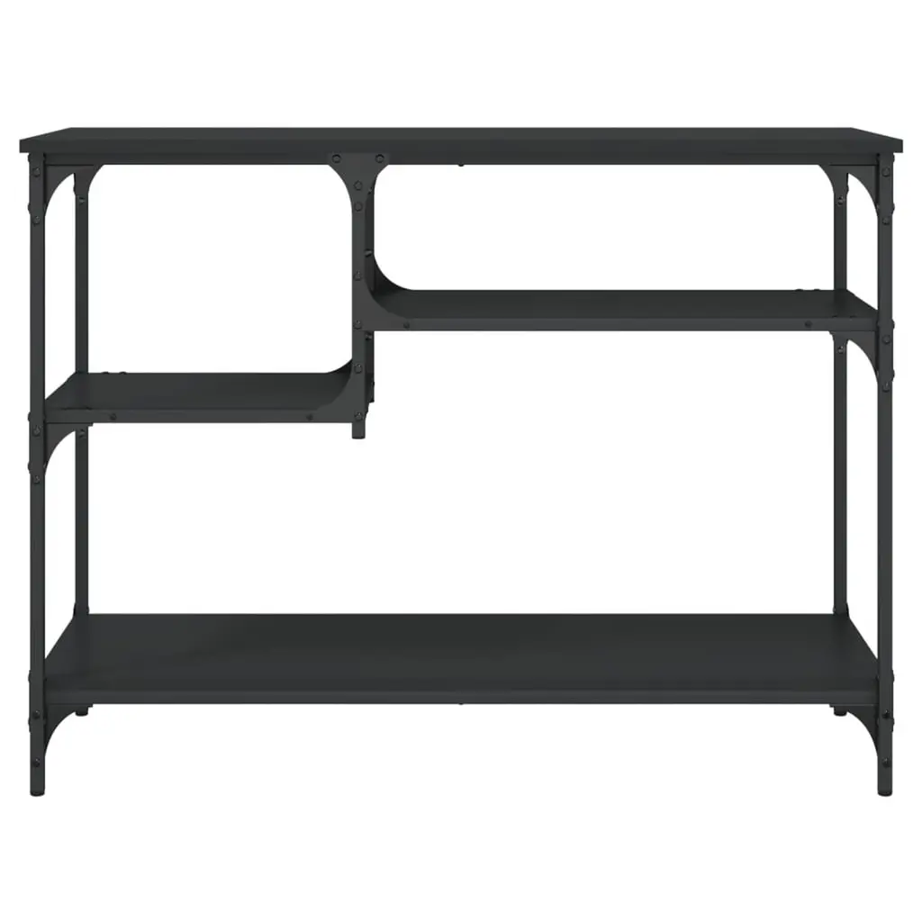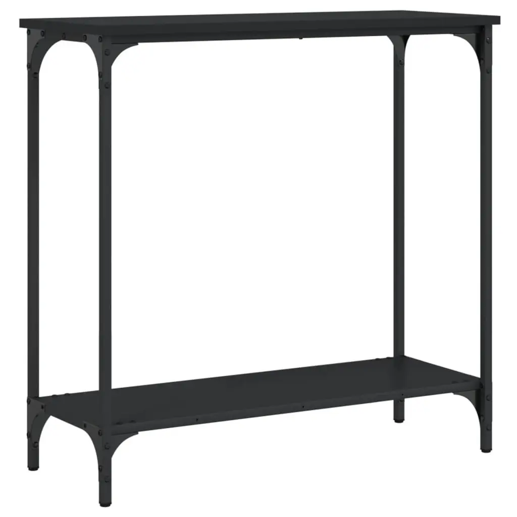 This Industrial Console Table with Storage Shelves is a neat mix of functionality and style, making it a top pick for any modern home. With a solid frame and two roomy shelves, it can work as a stylish entryway piece, a decorative spot in the hallway, or a useful addition in your office. The matte black finish gives it a sleek look that complements contemporary decor effortlessly, adding a bit of sophistication wherever you place it. Ample Storage: The two spacious shelves provide plenty of room for books, decorative items, or everyday essentials, keeping your space organized.Adjustable Feet: Featuring levelers that adapt to uneven surfaces, this console table guarantees stability and prevents wobbling no matter where it’s placed.Durable Design: Made from quality engineered wood, this table can handle daily use, offering lasting support and functionality.Stylish Appearance: With its industrial design, clean lines, and minimalist vibe, this console table easily fits into any modern home or office.Versatile Use: Perfect for entryways, living rooms, or offices, it serves as a stylish piece that jazzes up any interior decor.