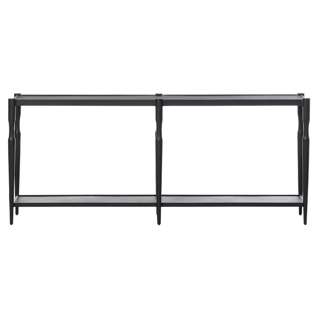 This Console Table perfectly combines style with purpose, designed to fit right into any living room or hallway. With its sleek black engineered wood top and sturdy metal frame, it brings an industrial cool while offering plenty of space for your essentials. The solid metal frame not only boosts stability but also adds an industrial vibe that can enhance any space. It can handle everyday use, making it a smart investment for your home.With a generous surface area of 78.7 in by 11.4 in, you can easily arrange decorative items, plants, or your keys and bag, keeping your entryway stylish and tidy.The ample storage underneath is a great way to declutter, letting you stash away books, mail, or other odds and ends, so you can maintain a neat space.The adjustable feet ensure this console table stays stable, even on uneven floors, preventing that annoying wobble that can spoil its charm.Super versatile, it can fit in various spots, like an entryway console, sofa table, or hallway stand, adapting easily to your living space needs.