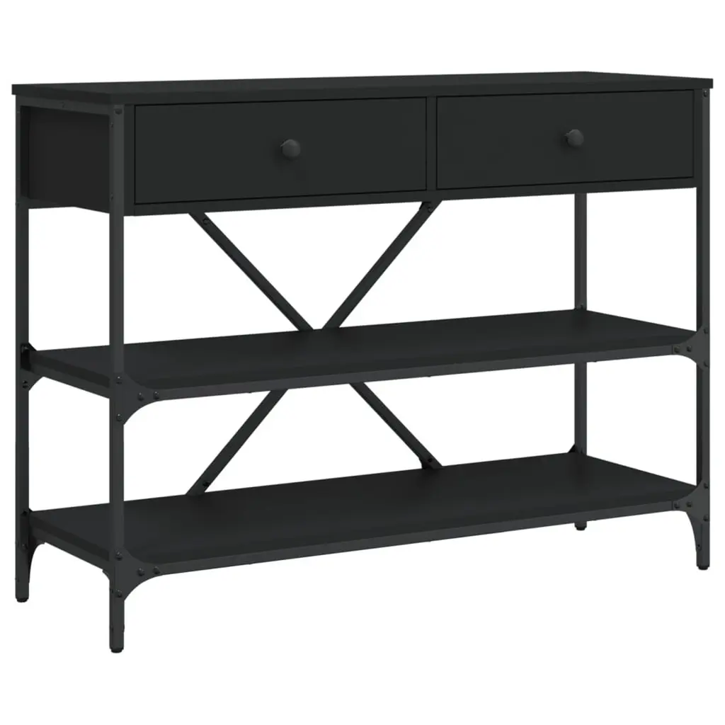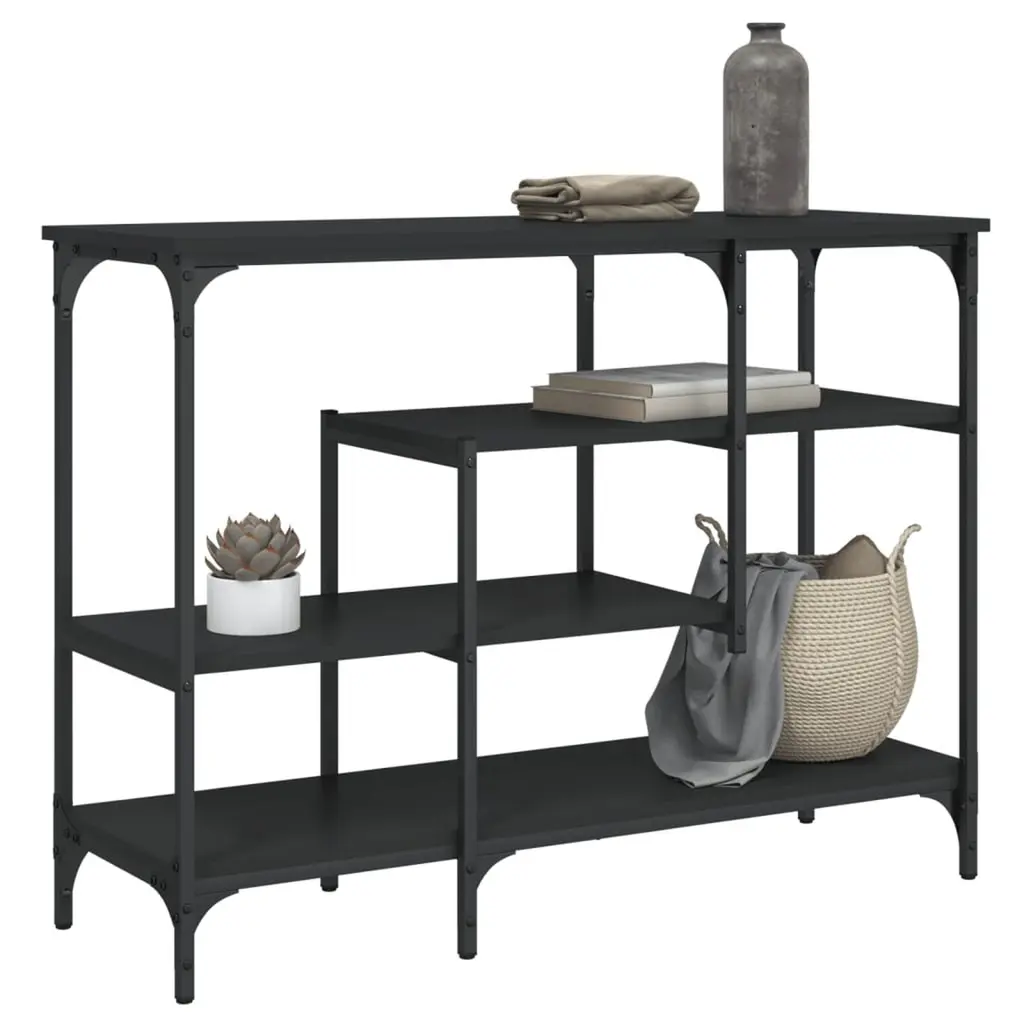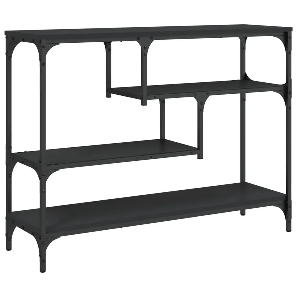 This industrial-style console table is all about blending style with practicality, perfect for sprucing up any hallway or living room. Its sleek black finish and strong design not only create a fab focal point but also provide loads of storage for books, decor, or daily bits and bobs, making it a handy addition to any modern home. Stylish Design: The modern industrial look brings sophistication, moving smoothly from hallway to living room and offering a stylish display area.Ample Storage: With three spacious shelves, this console table has plenty of space for essentials while keeping things organized.Height Adjustment: It features adjustable feet that keep the table stable on uneven ground, making sure it’s just right for any setting.Durable Frame: Made from metal and engineered wood, this solid console table promises long-lasting use while keeping its slick look.Versatile Use: Perfect for all sorts of spaces, from entryways to behind sofas, boosting functionality and style wherever it goes.