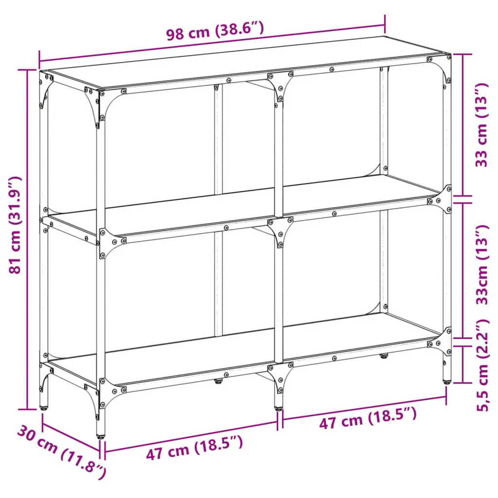 This Console Table is a stunning addition to any entryway or living space, offering both style and function. It's got a sleek black glass top held up by a shiny stainless steel frame, making it a classy statement piece that can lift your decor while giving you enough space for your favorite items. Contemporary Aesthetic: The modern design with clean lines and a glossy finish enhances any room’s interior, making it an ideal choice for those who appreciate sophisticated decor.Versatile Usage: This table is perfect for various settings, including entryways, hallways, or even behind the sofa, providing a multifunctional space for plants, decor, or essentials.Quality Materials: Made with high-quality glass and stainless steel, this console table guarantees durability while keeping a stylish look.Thoughtful Dimensions: Measuring 38.6 by 11.8 in, it's designed to fit in narrow spaces without cutting down on display area, ensuring it enhances rather than overwhelms your home.Easy Maintenance: With a smooth surface, just wipe with a damp cloth for cleaning, letting you spend more time enjoying your decor and less on upkeep.