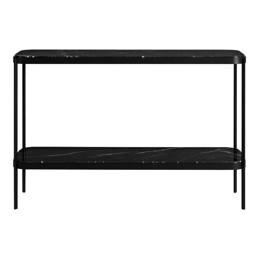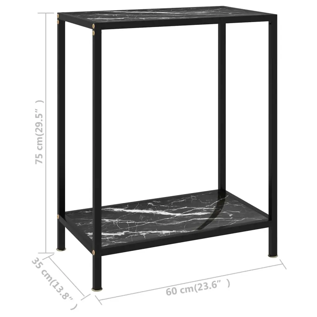 This console table shows off modern design with its sleek black powder-coated steel frame and classy tempered glass shelves. It's a great pick for any entryway or living room. The material combo gives it a striking look, boosting your decor while providing handy storage for everyday things like keys, mail, or decorative bits. The table's black powder-coated finish means it's durable and scratch-resistant, keeping its polished look for ages.At 29.5 in high and 23.6 in wide, it fits just right in tight spots, giving you a useful surface without taking up loads of space.Perfect for the hallway, this console table is a stylish yet practical way to greet guests at your home.Its tempered glass shelves not only add a modern flair but also let you show off your favorite decorative items beautifully.Easy to put together with only one person needed, and it comes with a wall attachment for extra safety and stability.