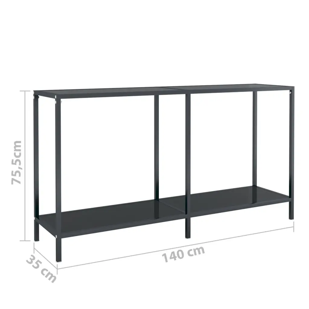 Vidaxl Console Table Black Tempered Glass, Powder-Coated Steel Standard