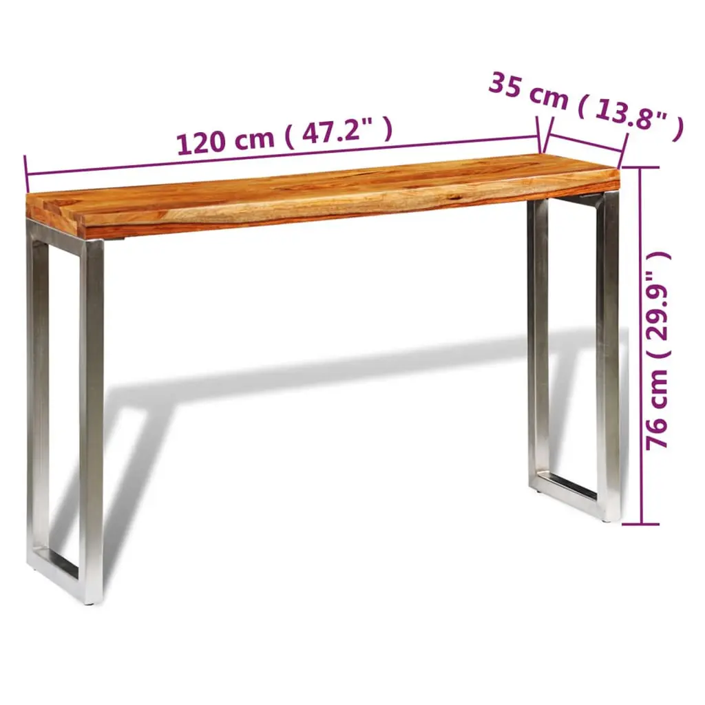 This console table hits the sweet spot between style and practicality, perfect for anyone looking to jazz up their living space with a splash of rustic charm. It’s made from solid Wood and paired with sturdy steel legs, making it not just a pretty piece but also super stable for everyday use. Top-Notch Material: Made from solid Wood, it’s strong and stable—a solid choice for your decor.Industrial Chic: The polished and waxed finish, combined with sleek steel legs, gives an urban touch to any room.Smart Design: At 47.2 in long and 13.8 in wide, it fits snugly in tight spaces while still providing enough surface area for decor or essentials.Indoors Only: This table is made for indoor use, adding a warm feel to living rooms or hallways.Easy Care: Keep it looking great by giving it a quick wipe with a dry cloth.