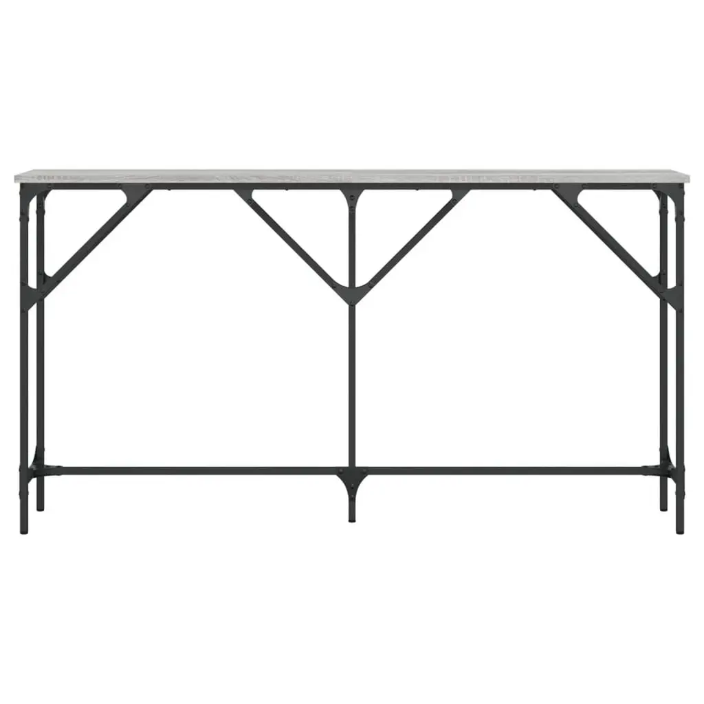 This industrial console table combines functionality with contemporary style, making it a stunning addition to modern homes. With its chic gray Sonoma finish and solid design, it’s not just a pretty piece but also a handy spot for decorative items and everyday essentials. Stylish Presence: The smooth gray surface paired with a matte finish brings sophistication to your living space, giving off an urban vibe that fits various decor styles.Stable and Adjustable: With adjustable levelers, this table can handle different floor heights, so it stays steady even on uneven surfaces, ensuring your items are displayed securely.Multi-Purpose Versatility: Great for entryways, hallways, and living rooms, this table can be your decorative display unit or a functional storage spot, catering to various needs.Sturdy Construction: With a tough metal frame and engineered wood, this table promises durability and strength, making it a reliable piece for the long run.Generous Dimensions: At 55.1 in long, 9.1 in wide, and 29.5 in high, the top provides plenty of space for your favorite decor items without being bulky in tighter areas.