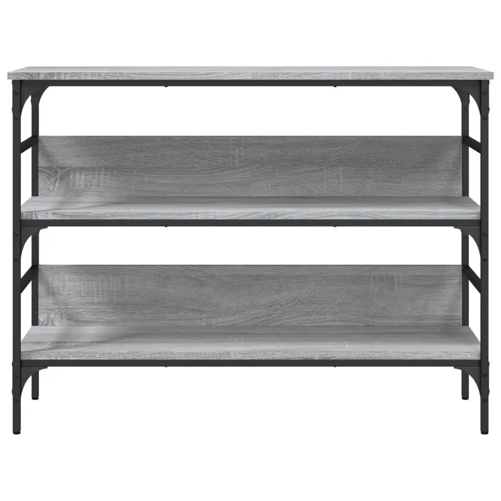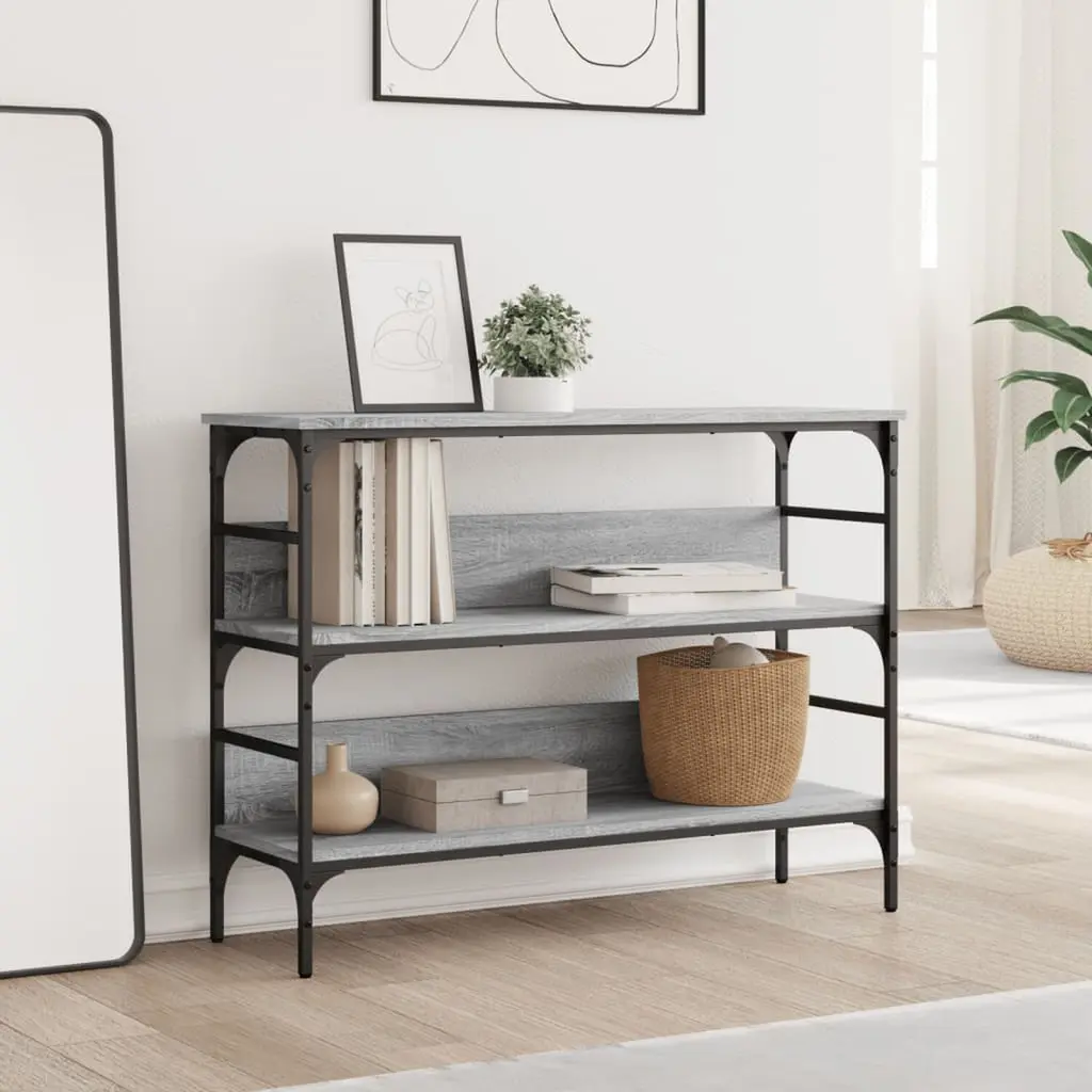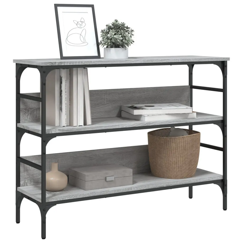 This console table mixes style and practicality, making it perfect for hallways, living rooms, or offices. The smooth grey sonoma finish highlights the engineered wood, and the matte black metal frame adds a modern touch, fitting right into your home or workspace. This console table has height-adjustable feet, letting you fit it perfectly in any room.With two spacious shelves, it’s great for showing off decor or tucking away essentials.Made from durable engineered wood, it stands up to wear and tear, making it a smart addition to your home.The stylish industrial design brings a rugged charm, enhancing the look of your space.Easy to put together, this table includes a wall attachment for added stability.