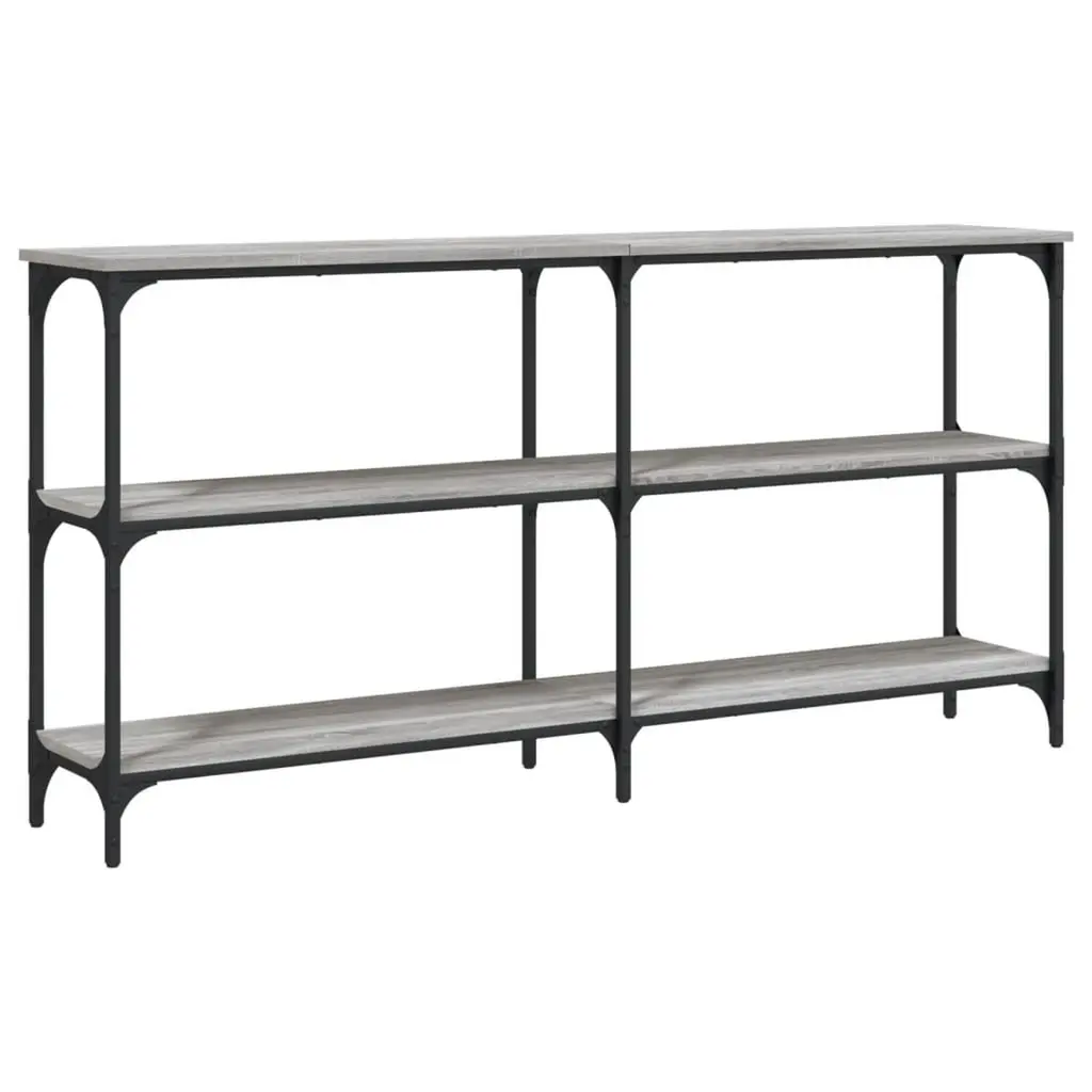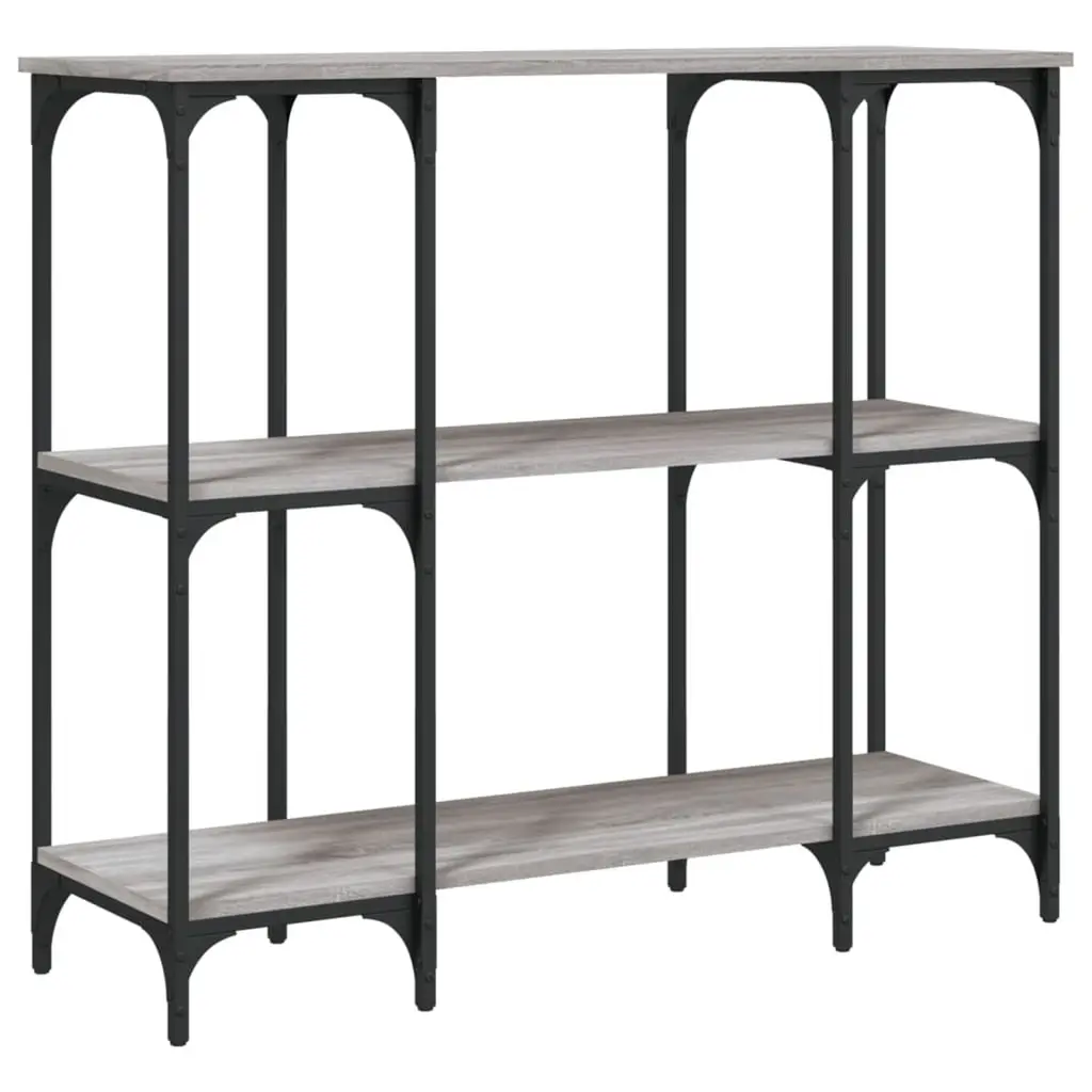 This console table adds versatility and style to your space, enhancing decor in hallways or living rooms. Its industrial design with the Grey Sonoma finish gives it a contemporary look that fits in both modern and traditional settings. Stylish Industrial Design: The table shows off an industrial look, blending raw materials with modern simplicity, making it a standout in any room. Functional Three-Shelf Structure: With three roomy shelves, this table offers loads of space for displaying decorative items, books, or personal treasures while keeping it all neat. Height-Adjustable Feet: The adjustable feet ensure stability on uneven floors, so your console table stands strong wherever you put it. Robust Engineered Wood Construction: Made from durable engineered wood and metal parts, this table is built to last while looking sleek, adding utility and style to your space. Easy to Assemble and Secure: Arriving with clear assembly instructions and a wall attachment device, this console table makes setup a breeze, ensuring safety in your home.