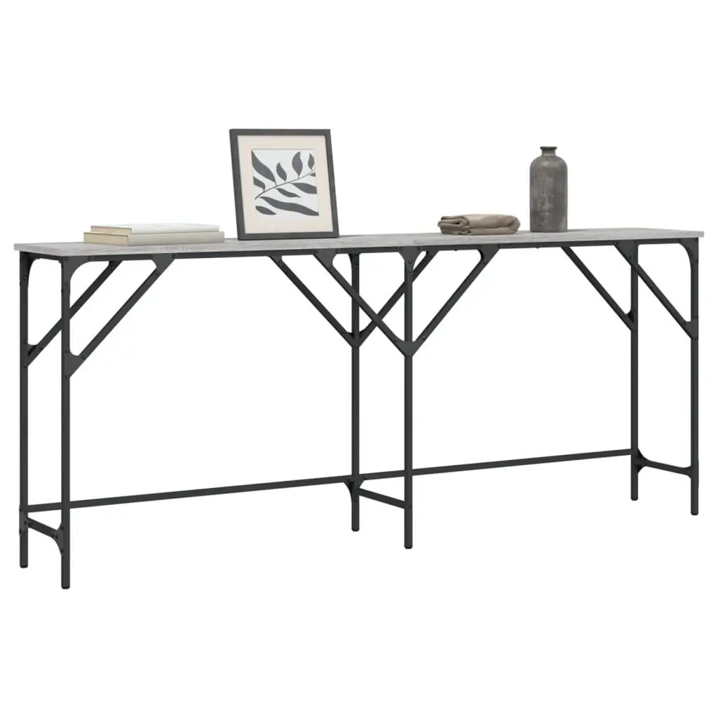 This console table, with its industrial design, mixes practicality and style, making it a must-have for your entryway or living room. It's 71 in long and 11 in wide, providing a generous space topped off with a classy Grey Sonoma finish while fitting snugly against walls or behind sofas. Adjustable Feet: The adjustable feet keep the table steady on uneven floors, making sure it stays solid wherever you put it. This extra feature not only makes it super useful but also helps the table last longer. Robust Frame: Built with a tough engineered wood top and a matte black metal frame, this table is all about everyday use without losing its style. The industrial look gives a nice modern touch to any room. Spacious Surface: At 71 in long, the surface is ideal for showcasing decor, holding keys, or even stacking your belongings as you come in and out. The size means it works well while making your room look good. Versatile Style: The table’s industrial style fits in with all sorts of decor, from rustic to modern. Pop it in your entryway or living room for an eye-catching focal point. Easy Assembly: This console table comes with everything you need for assembly. It takes two people with basic tools to put it together, so you can get it done pretty quickly.