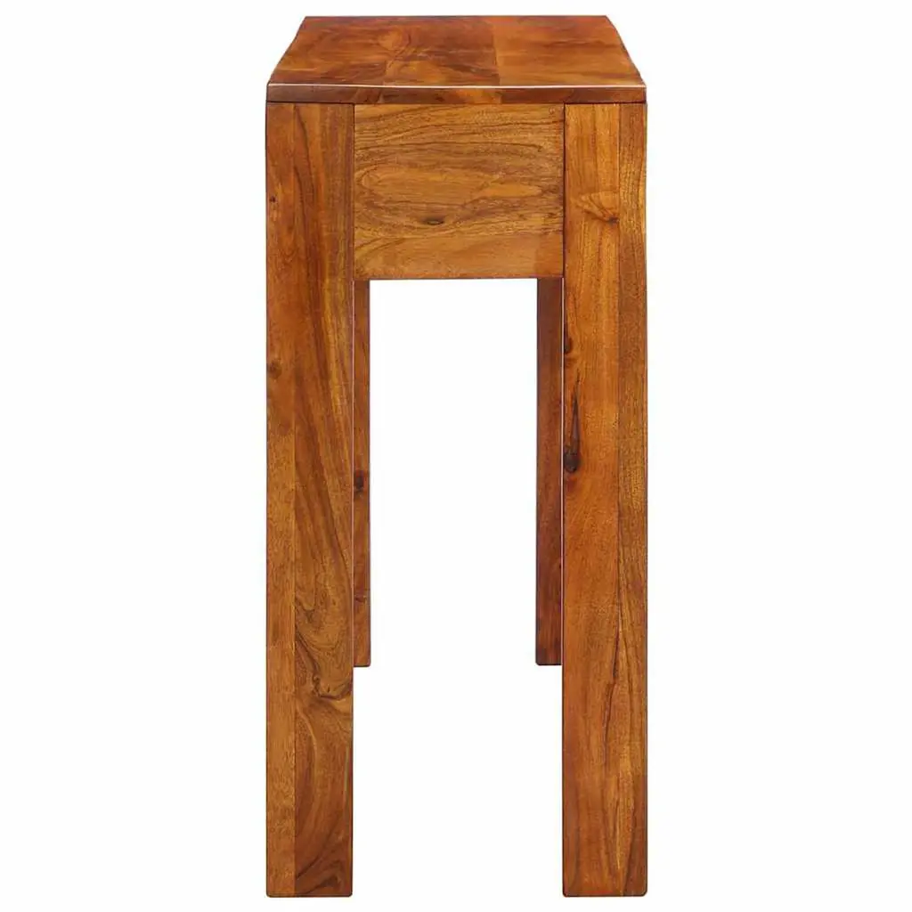 This console table shows off rustic charm with its solid acacia wood build and a lovely honey brown hue that suits any entryway or living area. At 43.3 in long, it’s great for displaying your favorite decor as well as storing your daily essentials, blending functionality with good looks. Ample Storage: The console features four spacious drawers, perfect for keeping your keys, mail, and other bits organized. Plus, the two shelves provide a spot to show off family photos or plants. Versatile Use: Great as an entryway organizer, it fits well in a hallway or next to a wall in the living room, making a stylish backdrop for your favorite decorations or plants. Durable Build: Made from solid acacia wood, this console isn't just pretty with its smooth texture; it's tough enough to handle daily use, ensuring it sticks around for years. Stylish Appearance: The polished surface gives it a rustic finish that elevates its look, blending natural vibes with elegance, making it fit for various home styles. Easy Maintenance: The smooth finish makes for easy cleaning, so you can keep it looking good without much fuss.