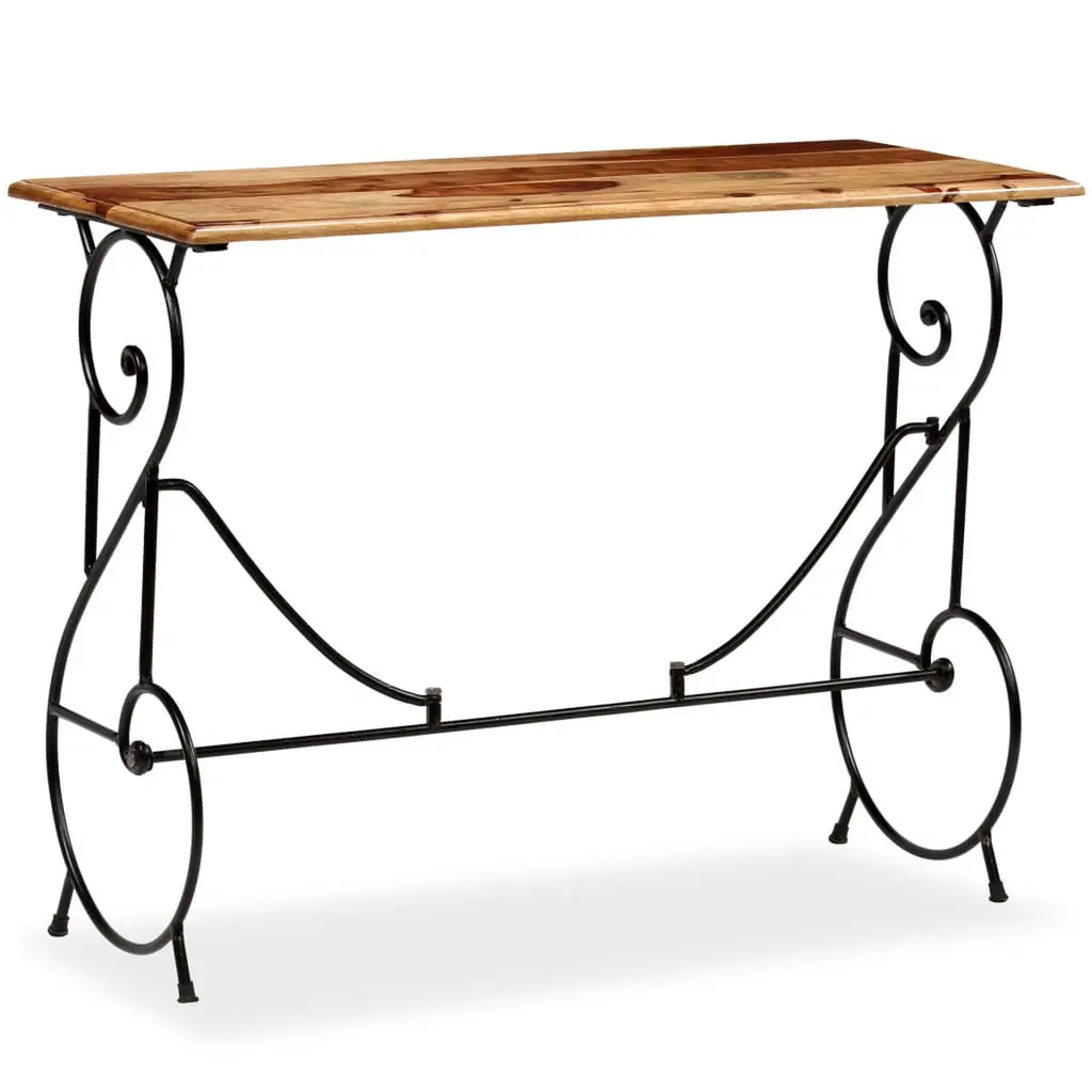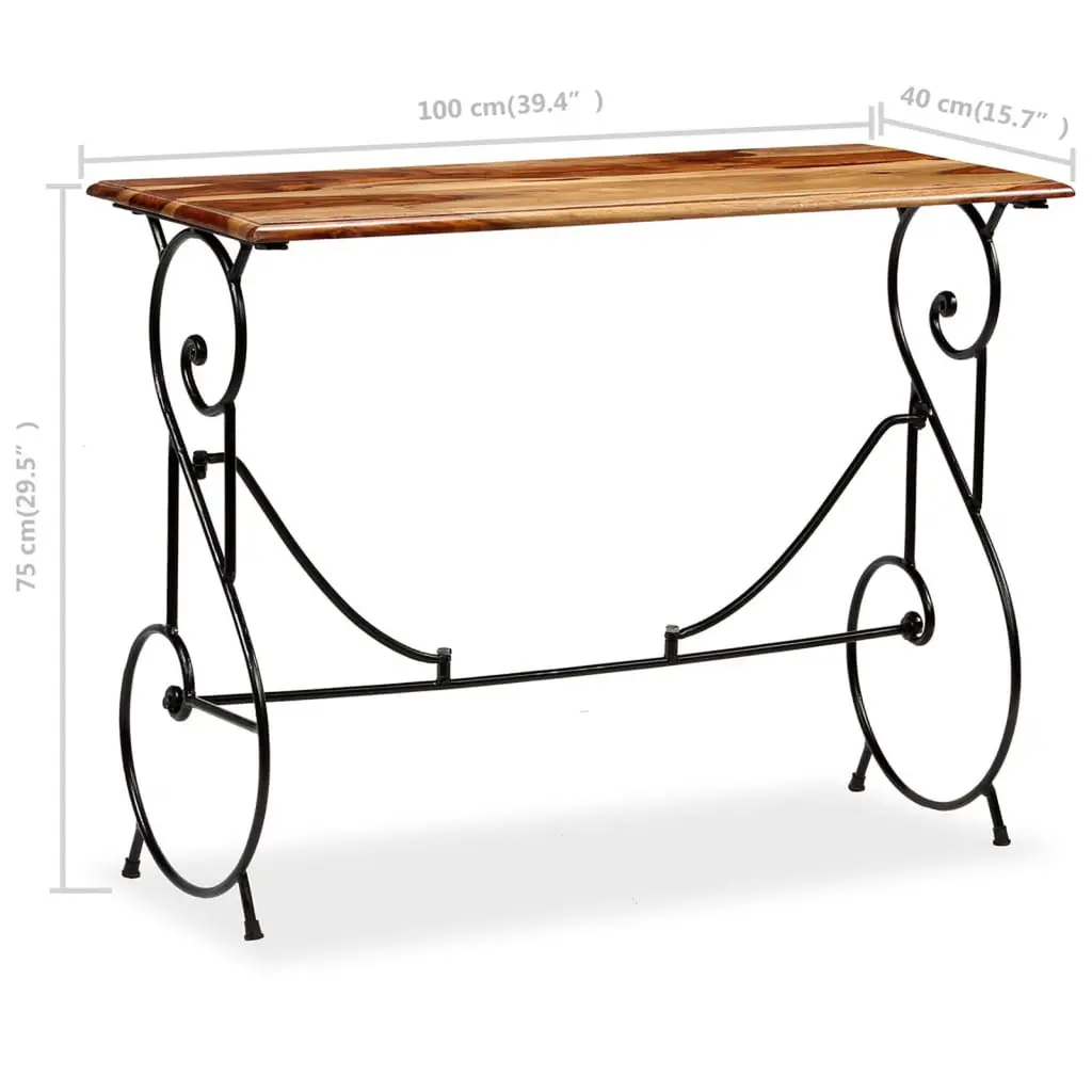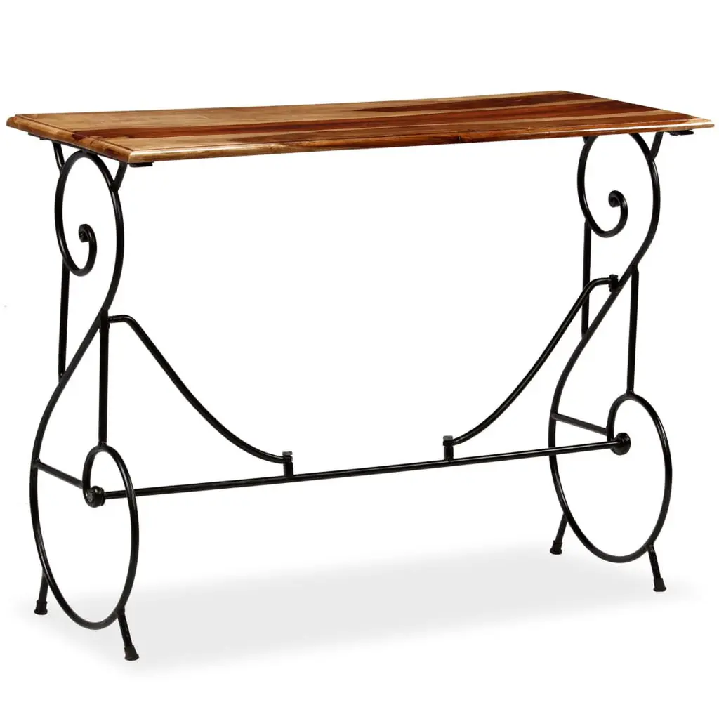 This solid Wood console table is a beautiful yet practical piece, perfect for any indoor area looking for a blend of style and function. Its lovely brown finish paired with a sleek black metal frame gives off a contemporary vibe, making it an awesome choice for entryways, hallways, or living rooms, merging seamlessly with both traditional and industrial styles. Sturdy Wood: Made from solid Wood, this console table offers a robust choice that stays useful for years while showcasing the wood's natural beauty. Industrial Black Frame: The eye-catching black lacquered steel frame adds a modern twist while providing a stable base that enhances the design and supports the surface with style. Versatile Use: Perfect for displaying decorative items, books, or plants, this table is a handy addition in various rooms around the house, making it a flexible piece in your furniture collection. Compact Yet Spacious: Measuring 39.4 in long and 15.7 in wide, the table takes up minimal space but provides ample surface area for essentials, making it ideal for smaller apartments or homes. Easy Maintenance: The smooth lacquered finish not only gives it a nice shine but also makes cleaning a breeze, keeping your table looking fresh with little effort.