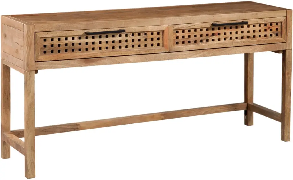 This Scandinavian Console Table beautifully mixes function with style, making it a great addition to your space. Its elegant design and natural wood finish create a warm vibe, perfect for showcasing decorative bits, photos, or even plants. Ample Storage: With three traditional drawers, this console table offers loads of room for keeping your things organized.Stylish Design: The natural wood finish and sleek shape enhance your home’s look, fitting various interiors.Solid Build: Made from solid mango wood, this table is built to last, providing sturdy support for your decorative items.Multi-use: Whether in the entryway, hallway, or living room, this console table serves different purposes and fits right in anywhere.Chic Organization: Great for tidying up your space, this console table mixes beauty with practicality, giving you a stylish way to manage clutter.