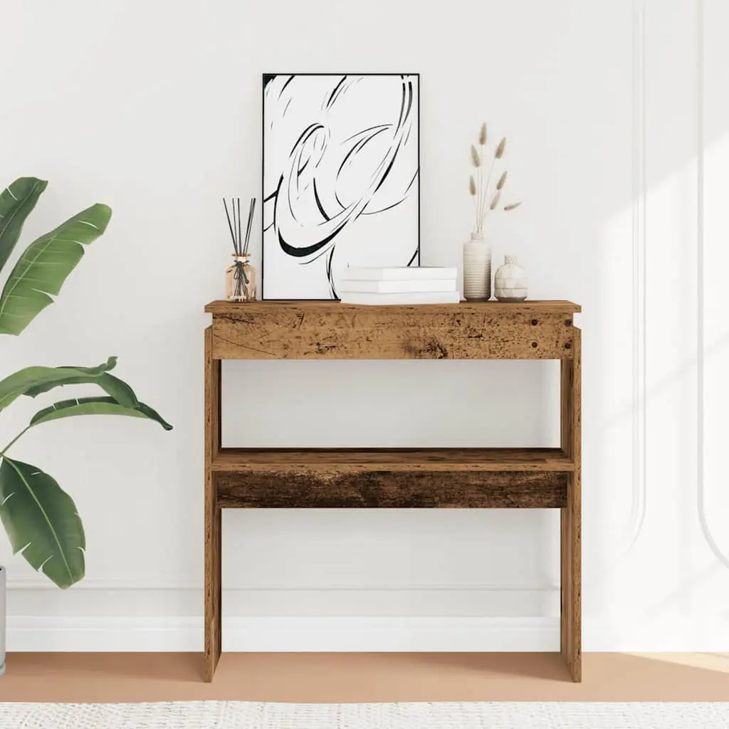 This console table is a fantastic mix of functionality and style, adding a nice touch to any space. Made from engineered wood and in a vintage old wood finish, it suits your entryway, living room, or hallway just right, striking a balance between practical storage and a chic spot for your favorite things. Ample Storage: This console table offers loads of storage space, perfect for keeping your home tidy and showing off decorative pieces. The smart shelf underneath helps keep everything organized and stylish.Modern Design: The table features a sleek, modern design with clean lines and a fancy matte finish. Its understated good looks fit into all types of styles while bringing a fresh twist to your home.Sturdy Construction: Made from engineered wood, this console table is built to last, offering you solid support for all your needs. The strong legs mean you can use it without worrying about different uses.Versatile Usage: Perfect for various spots, it can be a hallway table, behind-sofa spot, or an entry table. Its design is both practical and attractive, making it a must-have in any room.Sleek Dimensions: At 31.5 in long, 11.8 in deep, and 31.5 in high, this console table is compact but offers plenty of space. Ideal for tight spots, it provides a stylish solution without crowding the area.