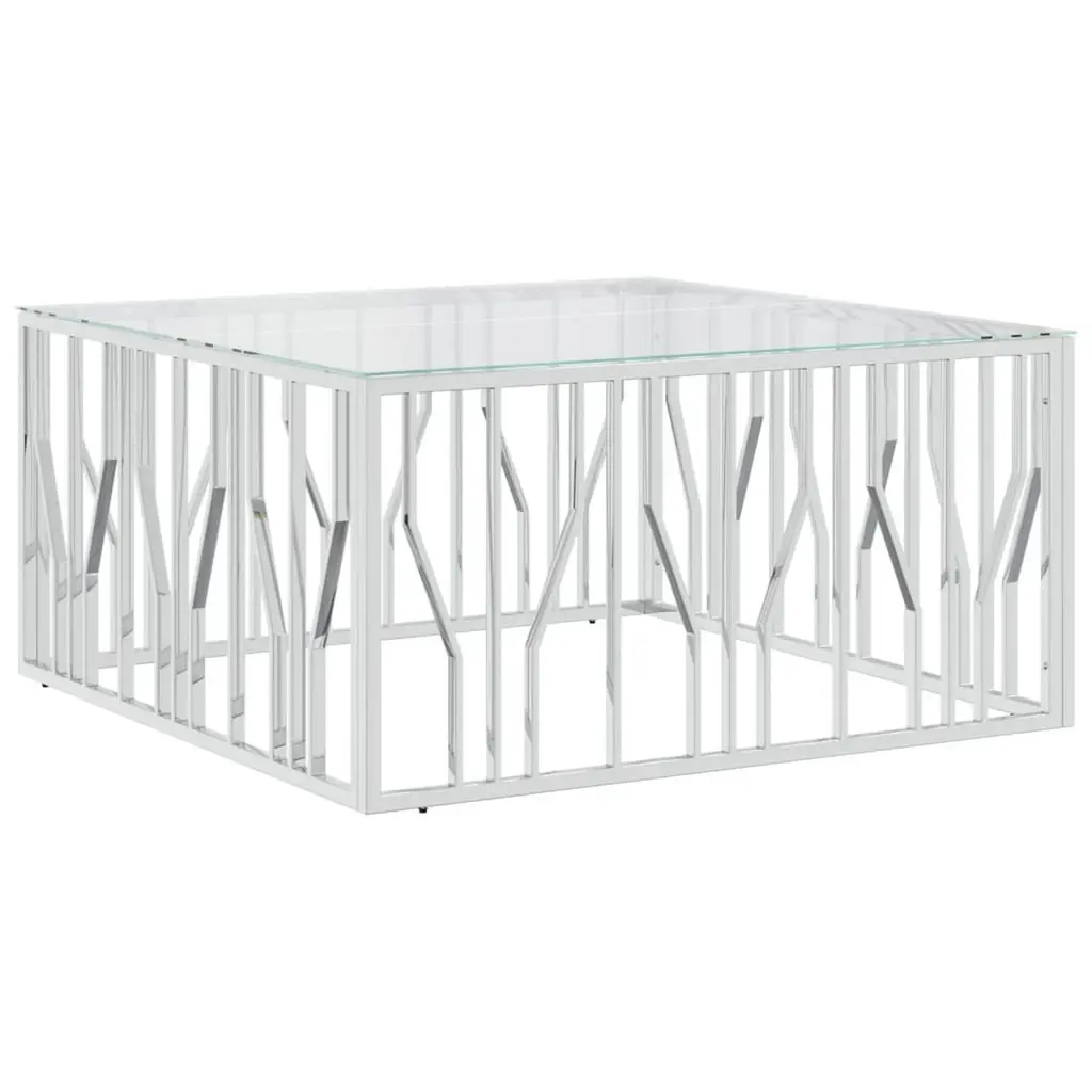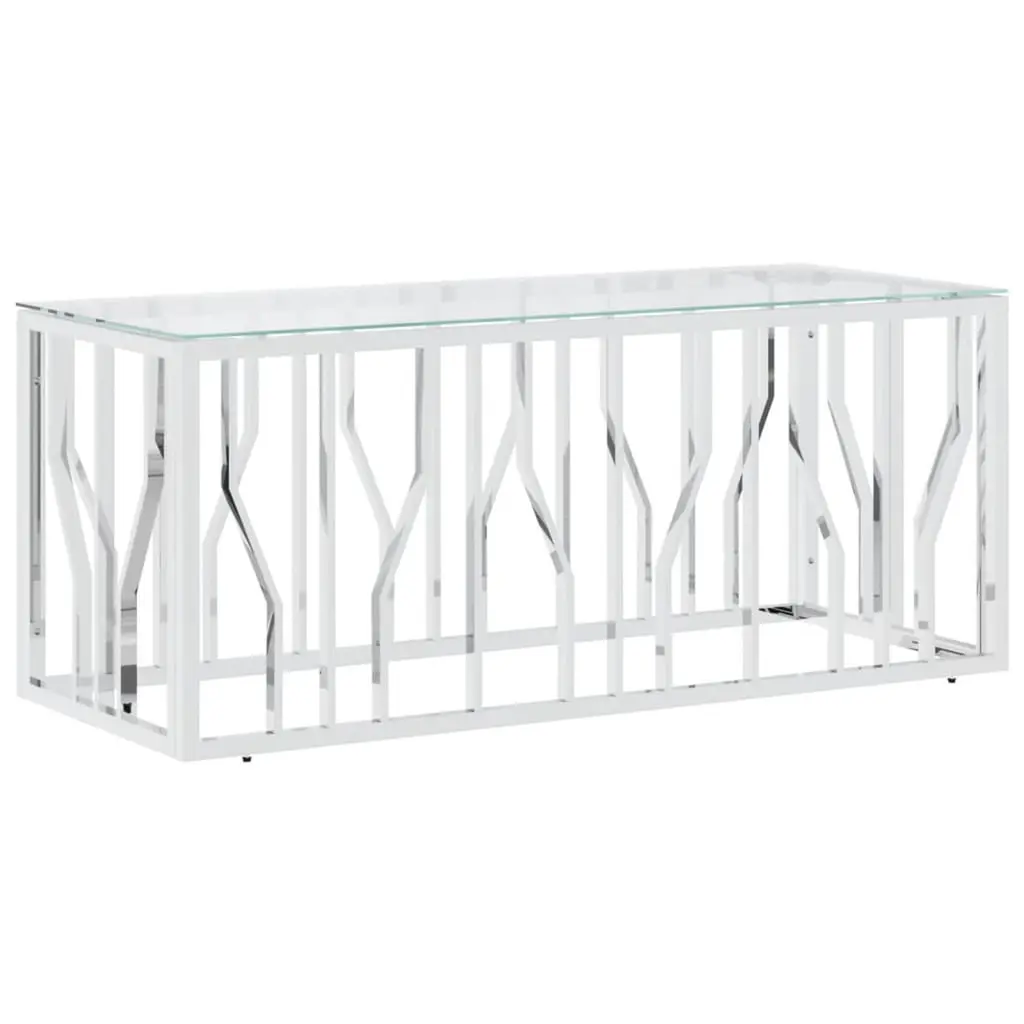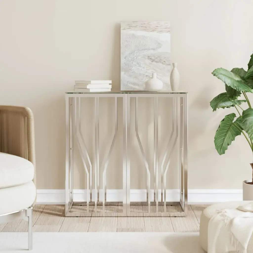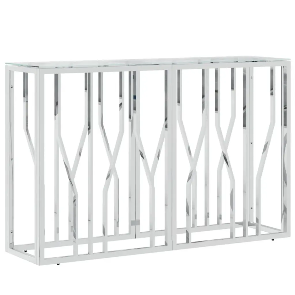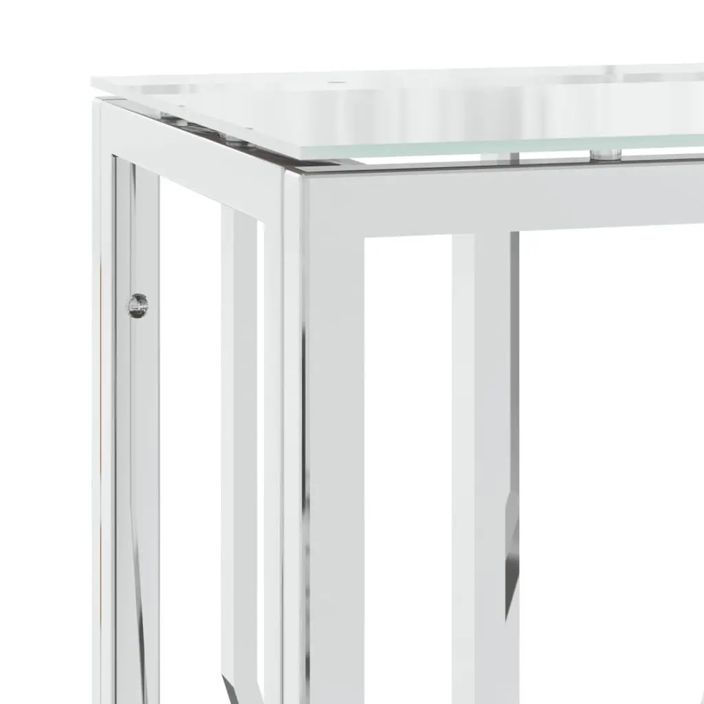 Vidaxl Console Table Silver Stainless Steel, Tempered Glass