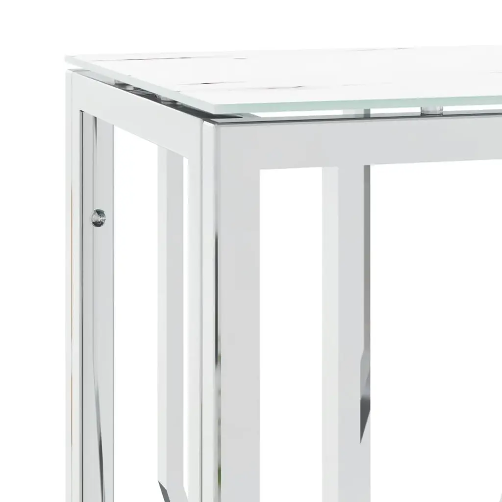 This Narrow Console Table combines function with a chic style, making it a perfect fit for modern living spaces. With a stunning white marble finish on the toughened glass top, paired with a sleek stainless steel frame, this table elevates any entryway, hallway, or bedroom, giving off an elegant vibe that's both inviting and classy. This console table has a marbled toughened glass surface that's not just a pretty face but also easy to look after.The polished stainless steel frame promises durability while bringing a slice of modern elegance to any room.Its narrow design maximizes space in entryways or hallways, giving you a great surface for decor or practical storage.With a wall attachment device, it can be securely fixed to avoid tipping, making it safer for homes with kids or pets.This table's versatility means it works wonders in living rooms, bedrooms, or as a plant stand, adjusting to your style and needs.