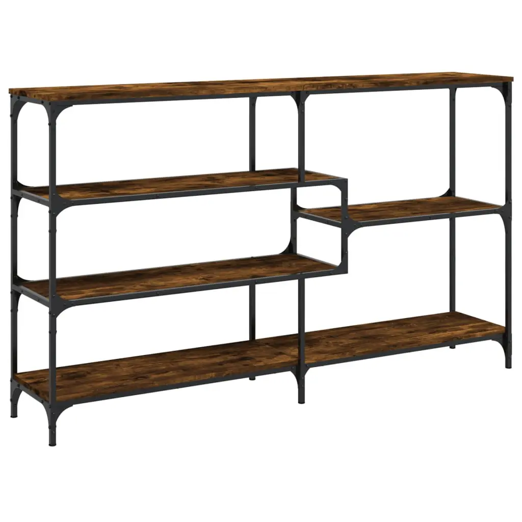 This industrial-style console table is not just practical; it looks good, too. With a sleek, smoked oak finish, it enhances your space and offers plenty of storage, mixing style with practicality for any decor. Ample Storage: With three big shelves, this console table gives you loads of space to keep things organized while showing off your favorite decor. The sturdy shelves can hold books, plants, and more to keep things tidy.Industrial Style: This console table, with its matte black finish and smoked oak top, nails the modern decor look and creates a stylish vibe in your home. It’s perfect for bringing some character to your hallway or living room.Adjustable Feet: With adjustable feet, this table stays steady, even on uneven floors. You can tweak its height to suit your space, making it super handy in any setting.Durable Material: Made from high-quality engineered wood that resists moisture, this console table is both good-looking and built to last. Plus, its smooth surface suits the modern aesthetic, ensuring it’s a smart investment.Versatile Use: Ideal for hallways or living rooms, this console table fits in with various decor styles. It serves multiple functions, from displaying personal bits to stylish storage without cluttering up your space.
