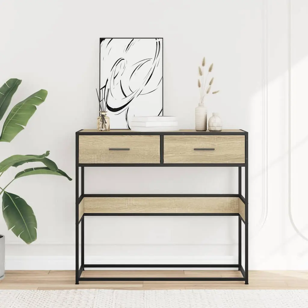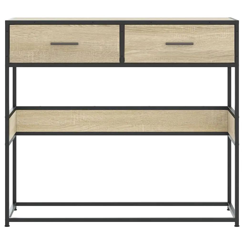 This Scandinavian Console Table is a top blend of style and practicality, making it spot on for any entryway or living room. It's made from engineered wood with a lovely Sonoma oak finish that looks fab and provides ample storage thanks to its two traditional drawers. Perfect for keeping essential items neat and handy. This console table is spacious with smooth surfaces, perfect for decorative bits or everyday essentials.Built tough for long-lasting use, keeping its classy look even with daily wear and tear.With a Scandinavian design, it’s all about simplicity and function, fitting in with different decor styles.The matte finish boosts its looks and makes it easy to clean with a non-reflective surface.At a handy height with compact dimensions, it’s great for snug spots while working well as a hallway or sofa table.