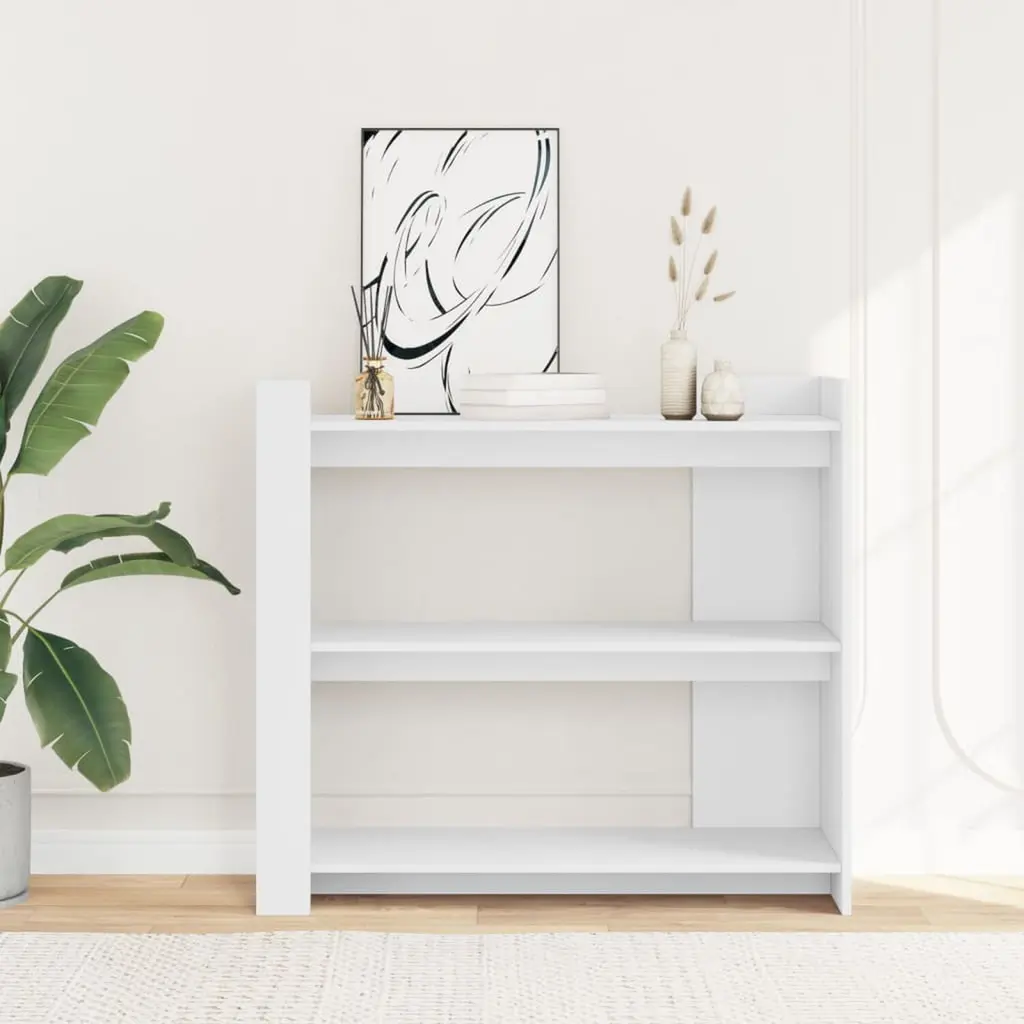 This console table cleverly blends function with style, making it perfect for hallways and living rooms. The white finish and traditional design create a calming atmosphere that complements any decor while providing a great display for decorative items and a handy storage solution. Ample Storage: The console table features three built-in shelves that offer lots of room for decorations and books, perfectly blending aesthetics with utility. Durable Material: Made from engineered wood, this table is built to last without sacrificing style. Elegant Design: The traditional style and smooth surface add charm to any space. Custom Shelves: Built-in shelves provide a neat look and are ideal for functional and decorative use. Versatile Use: Perfect for indoor settings, this console table is great for entryways or as a display surface in living rooms.