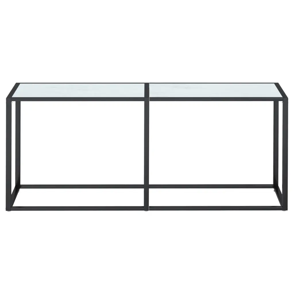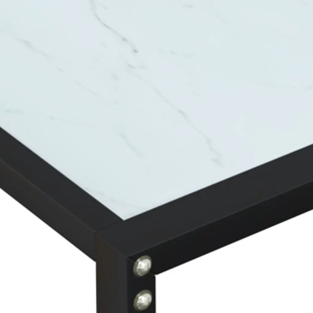 Vidaxl Console Table White Marble Tempered Glass, Powder-Coated Steel