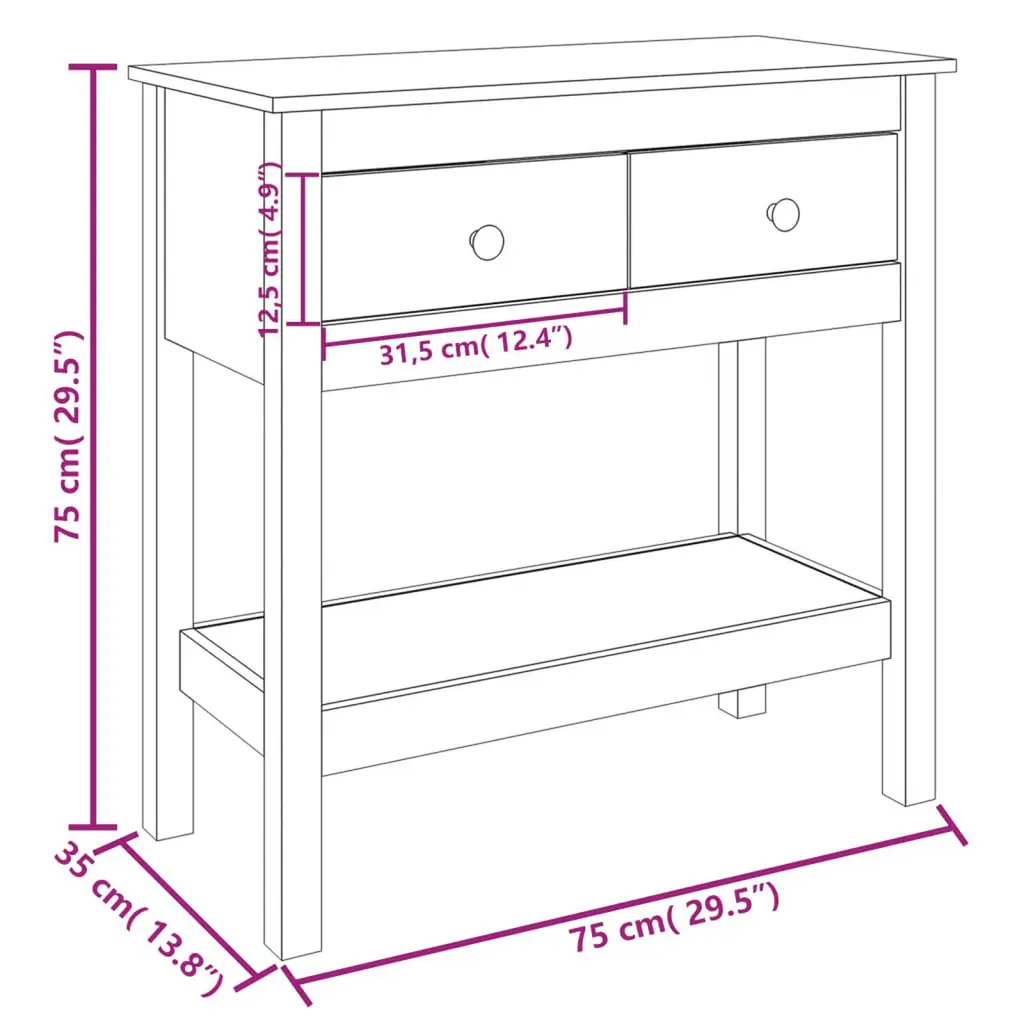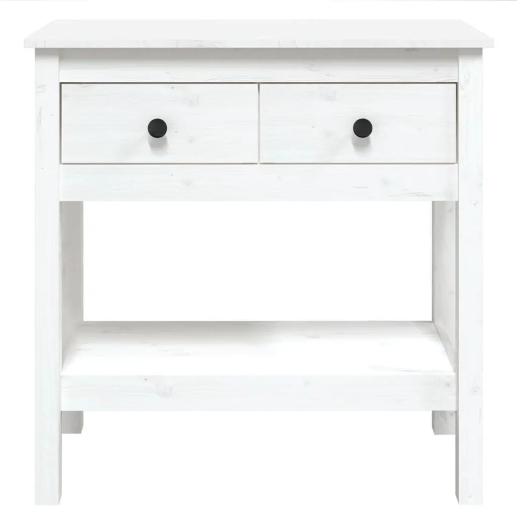 This Traditional Console Table is a smart addition to any home, designed to offer utility while upgrading your living space aesthetic. Made from solid pine wood, its classic white finish creates a lovely centerpiece in your hallway or living room, perfect for displaying decor or storing essentials. Superior Craftsmanship: The console table boasts a beautifully painted surface for added visual charm and durability. Its solid build can handle various items, making it both functional and classy.Multiple Storage Options: Fitted with two spacious drawers, this table lets you keep your things organized, so keys, mail, and other bits are neatly tucked away but easy to grab.Multi-Purpose Use: Use it in the entryway as a welcoming table or in the living room for added style; its versatile design fits into different roles and spots perfectly.Sleek Dimensions: Measuring 29.5 in. long and 13.8 in. wide, it's compact enough for tight spaces while still providing ample room for decorative bits or daily essentials.Effortless Maintenance: The smooth surface makes it a breeze to clean – just use a damp cloth to keep it looking sharp.