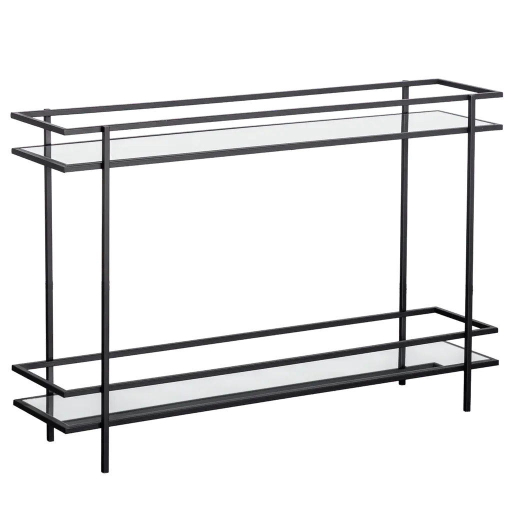 This console table shows off modern design with its sleek white finish and tempered glass tops. It's a fantastic addition to any hallway or living room. The streamlined look gives it a sophisticated vibe while providing plenty of space for decorative items or storage, making it spot on for anyone after style and function. Stylish Modern Design: Its simple lines and clean look make it a versatile piece for various settings.Durable Frame: The strong powder-coated steel construction ensures lasting durability while keeping a contemporary style.Spacious Top Surface: At 55.1 x 13.8 in, the tabletop gives you plenty of room for photos, plants, or decorative art.Effortless Care: The glass surface wipes clean with just a damp cloth, keeping it looking sharp over time.Indoor Use Only: Made specifically for indoors, perfect for entryways, hallways, or living rooms.