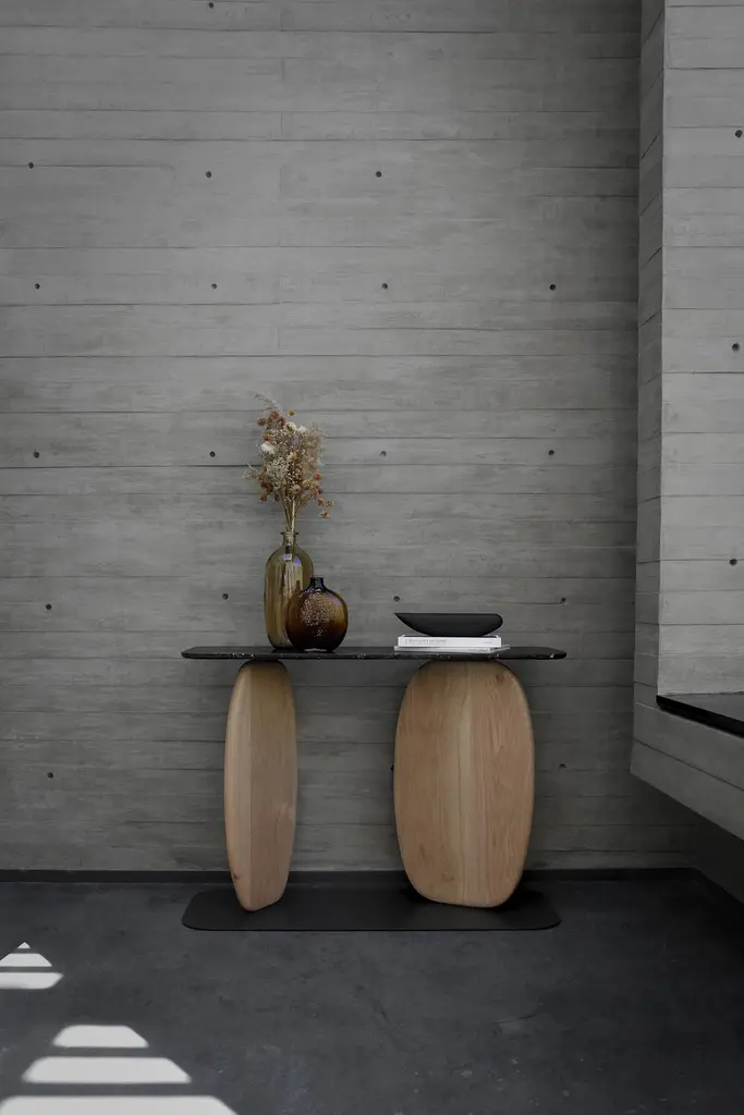 VII Séptima console by Joel EscalonaDimensions: D 120 x W 40 x H 85 cmMaterials: oak wood, metal, Negro Monterrey marble.White oak with metal base and Negro Monterrey marble cover console.Joel EscalonaHe was born in Mexico City and studied Industrial Design at the Universidad Autónoma Metropolitana.Currently, in addition to being director of his own design studio, Joel Escalona is Creative Director of Breuer, co-founder and active member of Cooperativa Panorámica, as well as being a professor at ITESM and CENTRO Universities.Breuer is a company specializing in the design and manufacture of custom furniture and spaces, which began in 1993 in Mexico City under the direction of Arturo Verástegui.Since the beginning of the nineties Arturo Verástegui, founder of the company, began his career in the world of furniture: beginning with the distribution and manufacture of residential furniture and with more than a decade of experience in commercial furniture, Breuer was born with a strong Industrial and trade vocation.That is only one part of our history, the other began almost 100 years ago with the architect and designer Marcel Breuer, from whom our name arises. But it is not only the name that we take from Marcel Breuer, but also his modernist ideals and the desire to implement the latest in manufacturing technology is his designs.