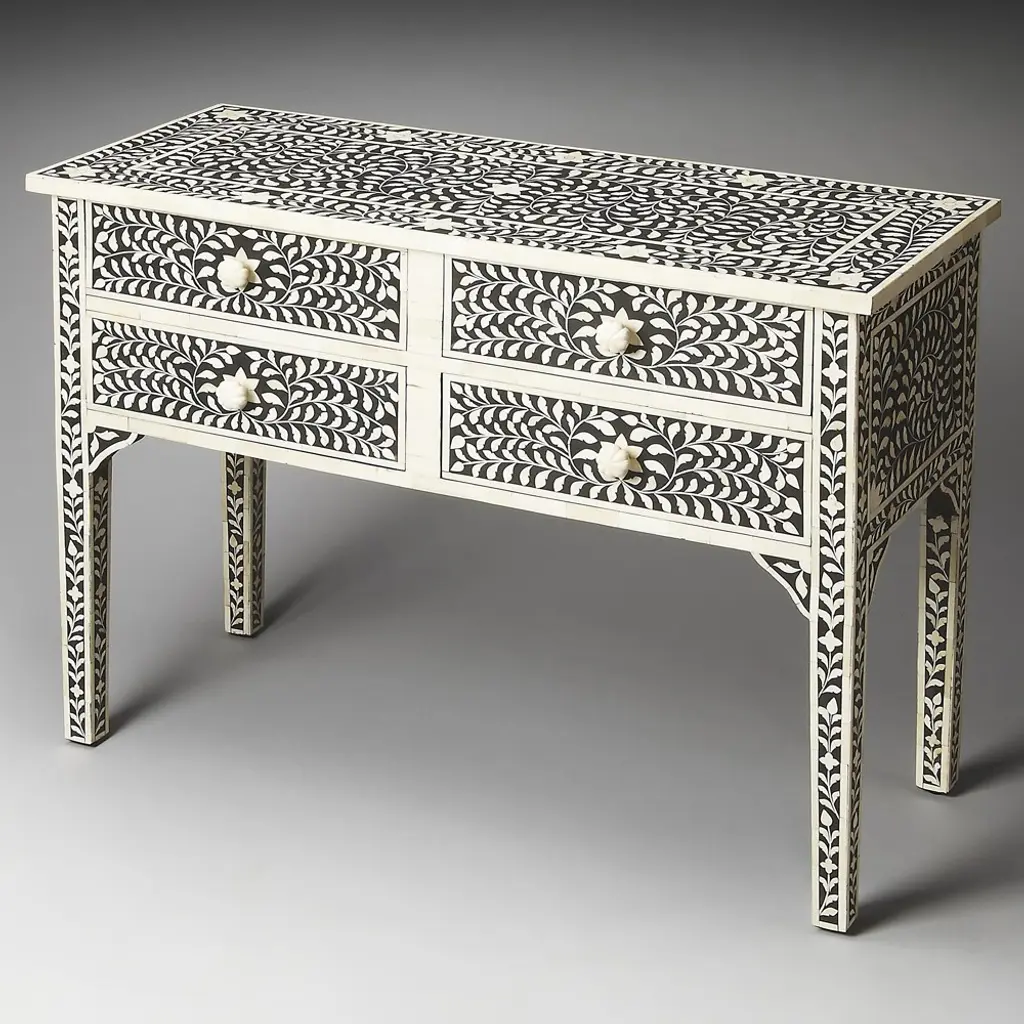 Vivianna Modern Classic Black Cream Bone Inlay Console Table
