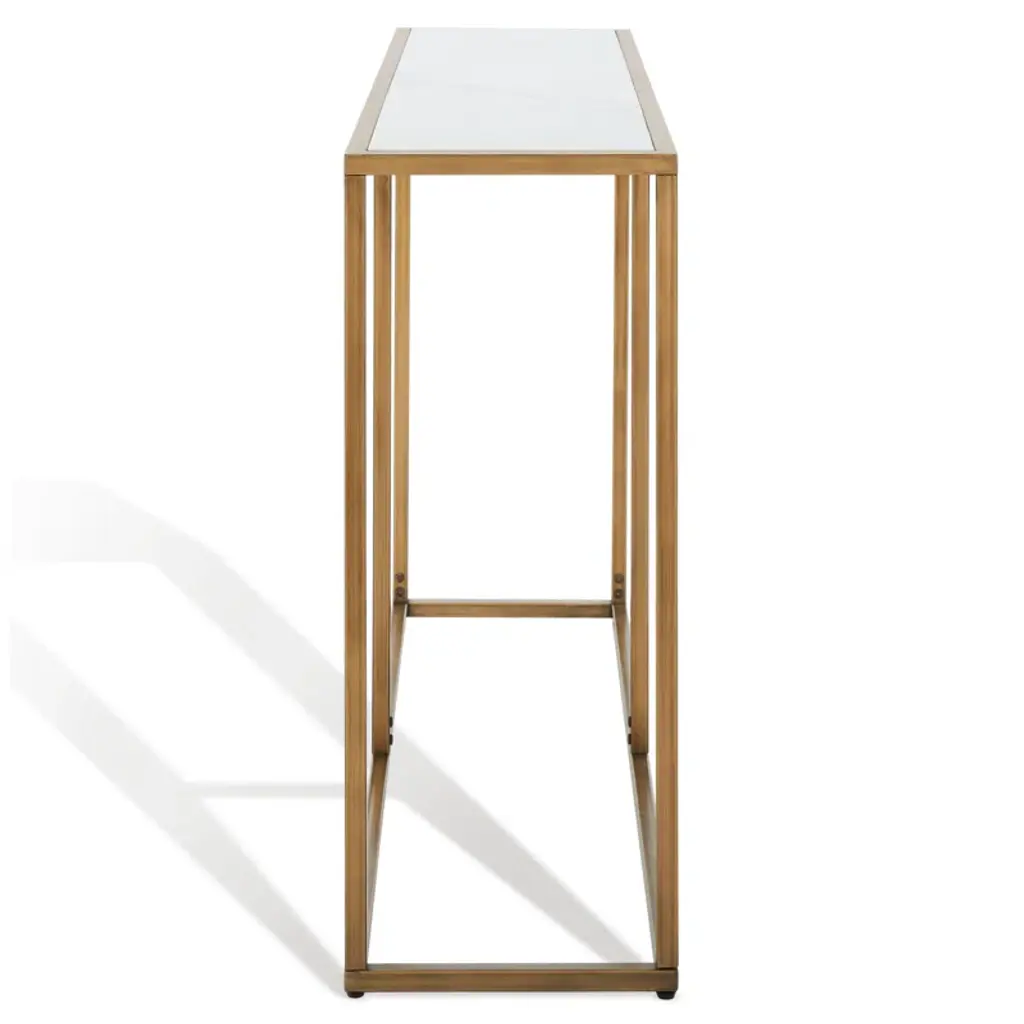 Outclassing all the rest, this Wells Console Table is the epitome of elegance. Wells’s smooth white marble top emits an aura of undeniable glamour, and its open bronze metal frame perfectly enhances Wells’s lavish look.