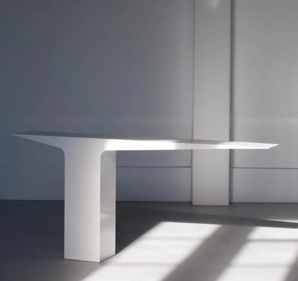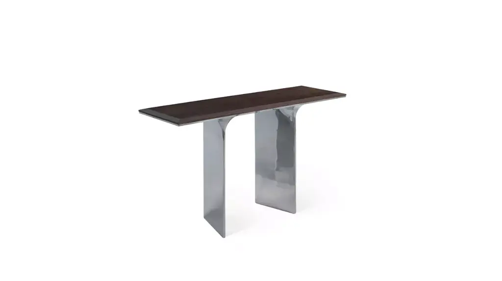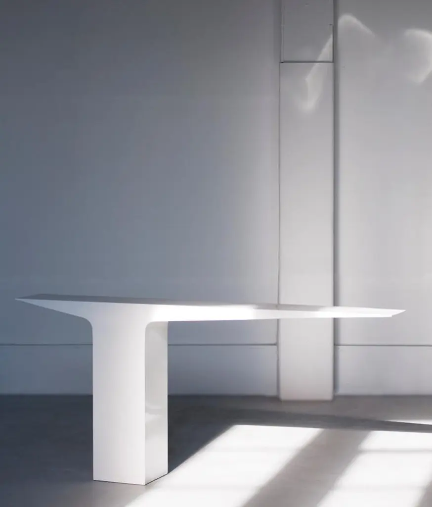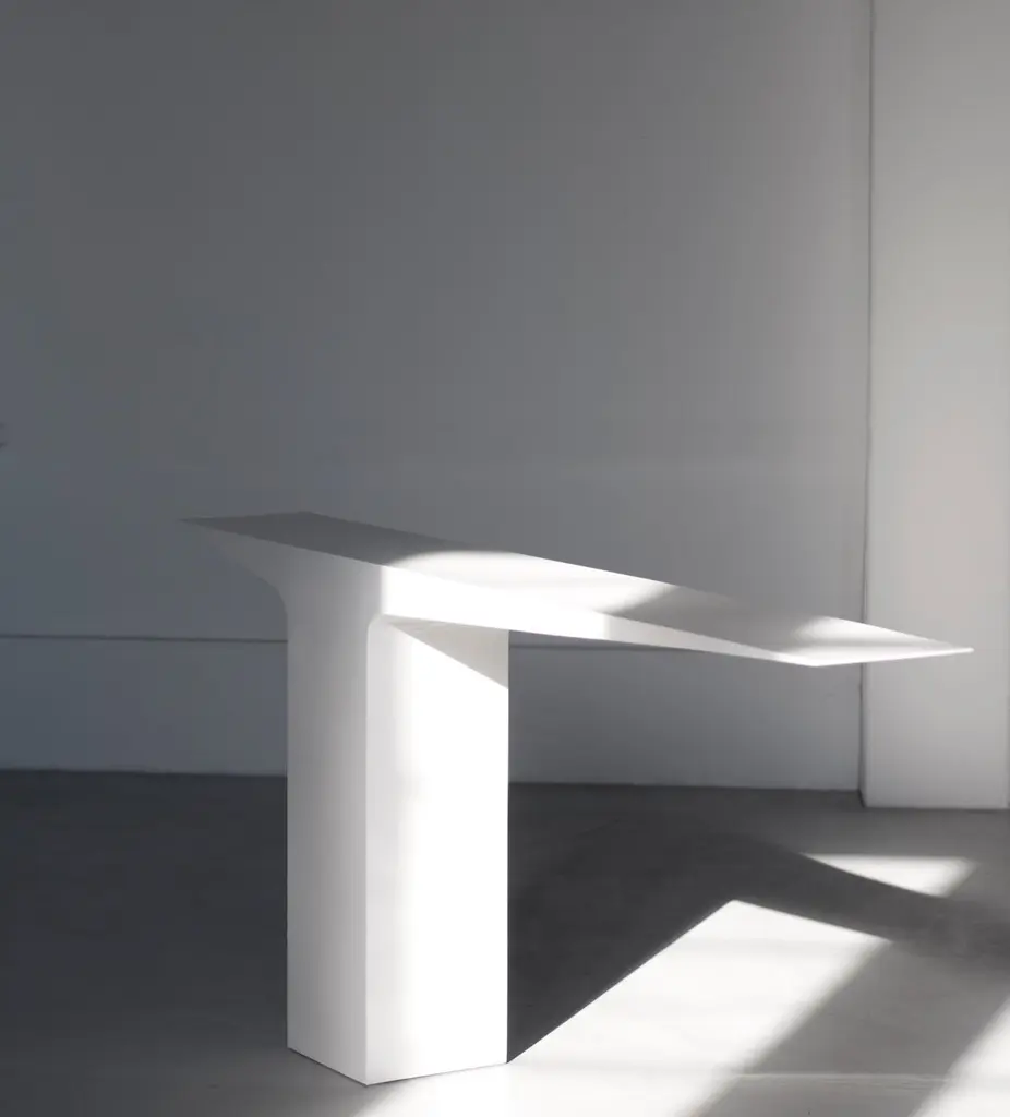 White Blade Console by Pol Quadens Limited Edition Of 8+4 Pieces.Dimensions: D 30 x W 210 x H 95 cm.Materials: Satinated stainless steel.Pol Quadens was born in Brussels. His father was active in the fields of composites the metal industry, and the world of materials, therefore, surrounded Pol since his early childhood. After his artistic studies, he starts restoring vintage cars. This experience has allowed him to gain strong practical skills and a deep knowledge of all materials.In 1987, he made his first creations and production of objects. His sensitivity and passion for the arts led him to create functional artworks. His CD shelf has sold more than 100,000 pieces and has become iconic in its category.