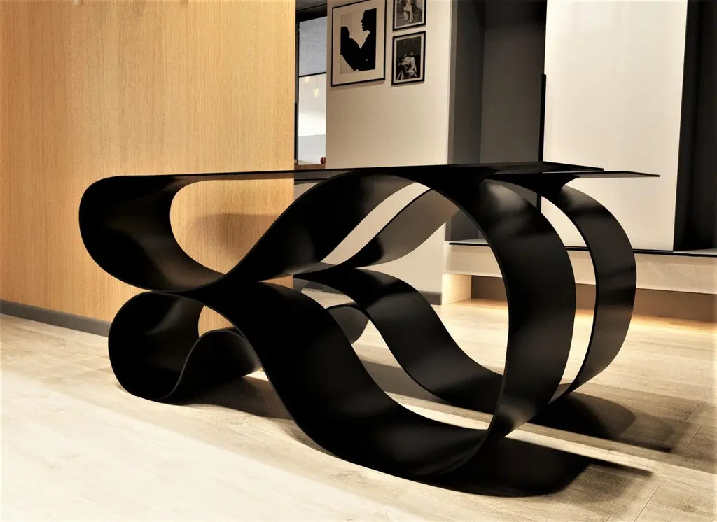 Whorl Console In Black Matte Powder Coated Aluminum By Neal Aronowitz Design